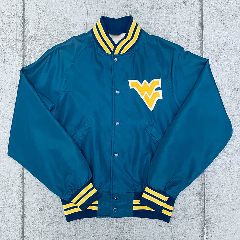 West Virginia Mountaineers 1980’s Spellout Bomber Blue Satin Jacket