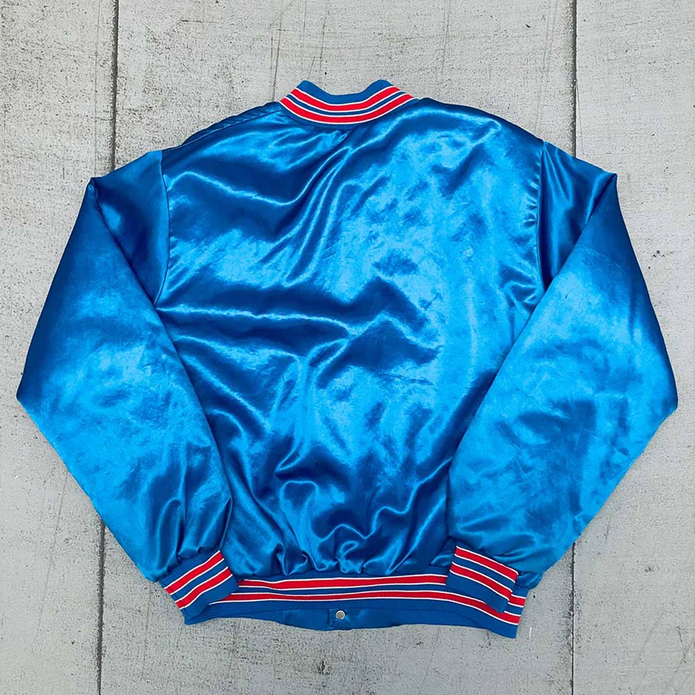 Perhaps, it’s time to consider the material and design of the piece: the collared, cuffed, and hemmed jacket has a lovely ribbed texture to it. Specifically, the snap tab closure at the front gives a traditional touch, whereas full length sleeves of 1991/92 Washington Redskins Super Bowl XXVI Jacket provide coverage throughout the arm. The logo of the Redskins team is boldly given on the chest and when you put on this jacket, there can be no doubt about your preferred team.