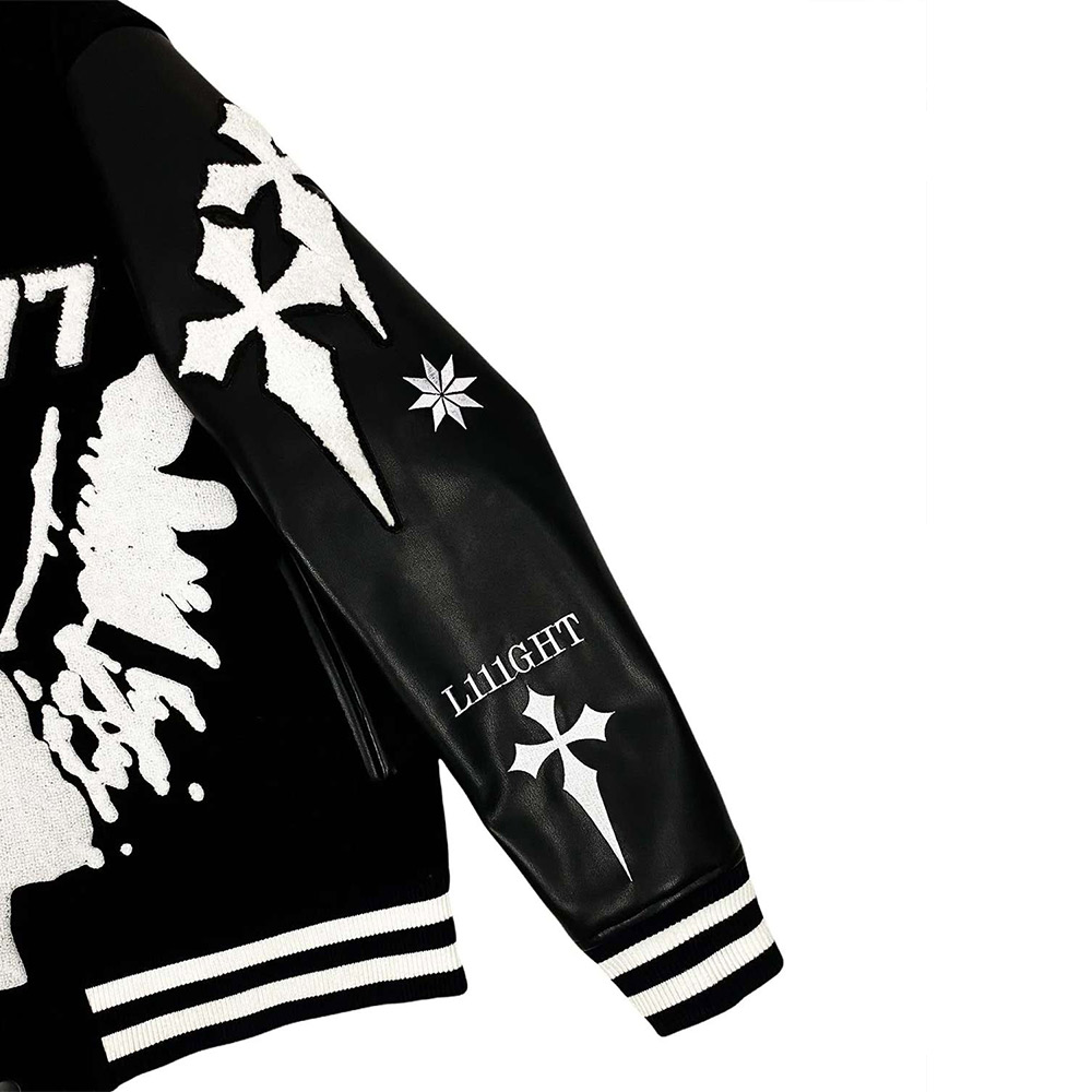 OVD 777 Letterman Varsity Black Full-Snap Wool/Leather Jacket