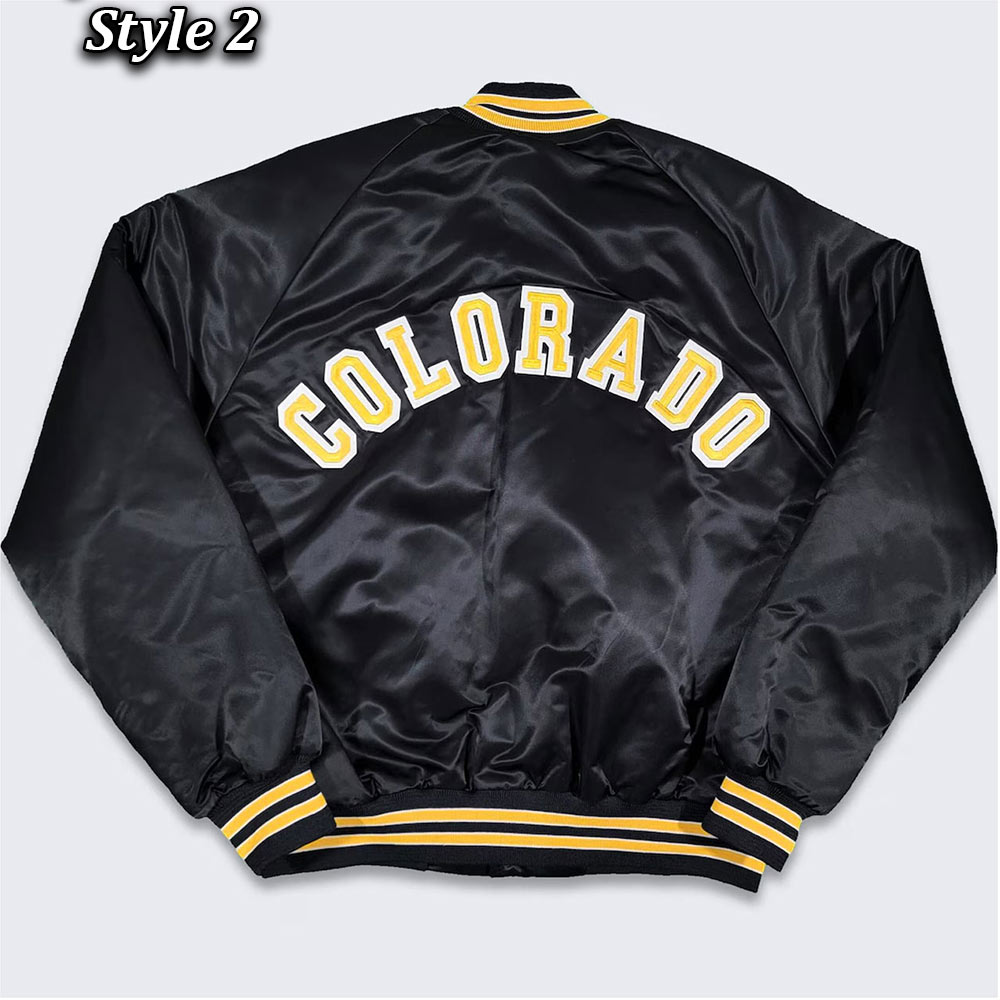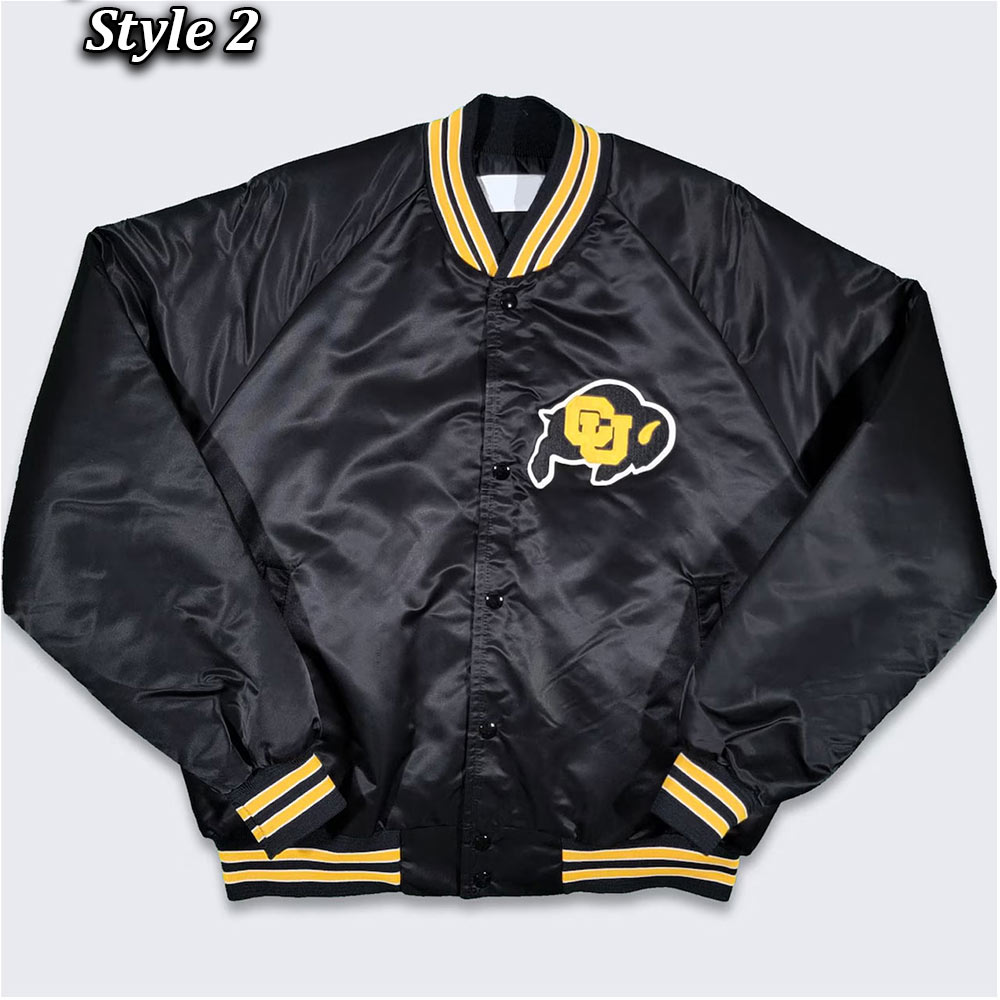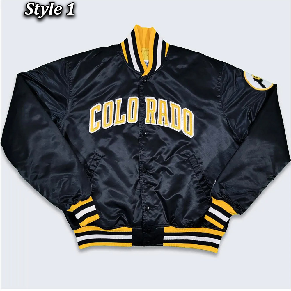 Refined your style odyssey with the Colorado Buffaloes 80s jacket, a meticulously crafted masterpiece that exudes excellence through its captivating black hue and intricate accents. This jacket features a rib-knit collar and buttoned front closure, seamlessly blending utilitarian function with high fashion, reshaping your style presentation. Envelop yourself in the luxurious embrace of the viscose inner lining, cocooned in opulent comfort. Elongated sleeves, adorned with sleek rib-knit cuffs, infuse an enchanting touch, elevating your elegance to unparalleled heights. Enhanced by an inner pocket and two outer pockets, the 80s Colorado Buffaloes jacket epitomizes practical refinement. A symbol of sophisticated gatherings, this Colorado Buffaloes 80s jacket mirrors your dynamic spirit and sets a fresh benchmark for trendsetting brilliance—an emblem of your distinctive style journey, destined to leave an indelible impression.