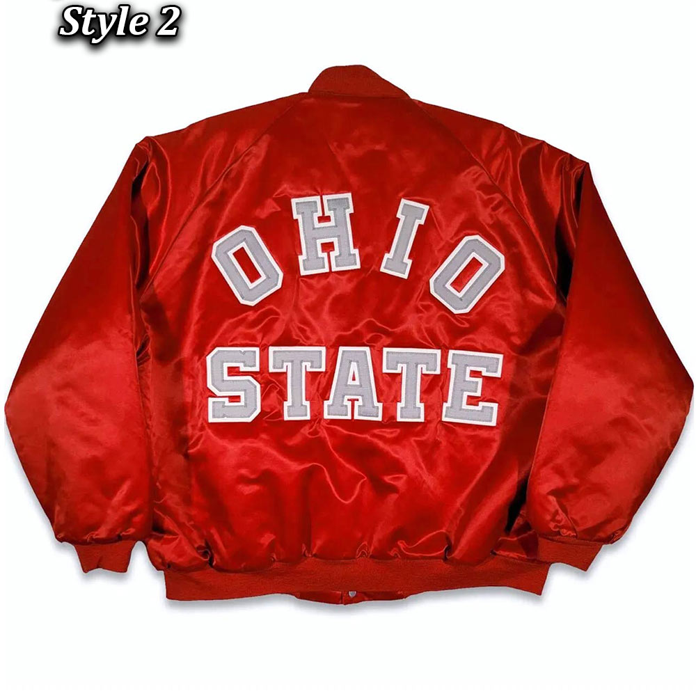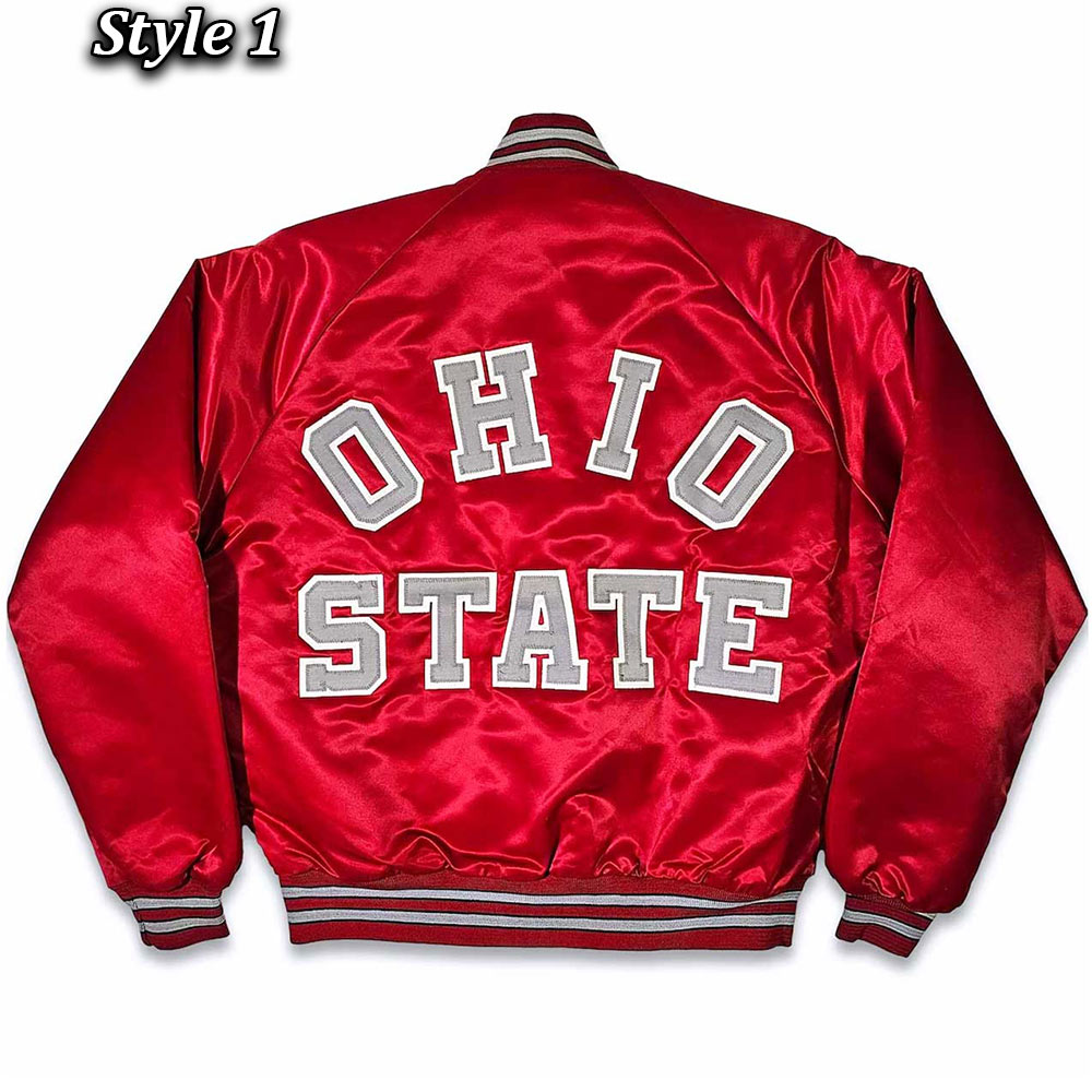 Step into the legacy of the Ohio State Buckeyes with the 80s Jacket, a bold red bomber that captures the energy and pride of the ’80s era. The jacket is tailored from premium quality satin fabric exudes a sense of nostalgia while offering modern comfort and has glorious red color that make you look attractive and innovative. The full-snap front closure and rib-knit collar and cuffs pay homage to the classic bomber style, embodying the spirit of camaraderie and competition. The Ohio State Buckeyes emblem displayed on the jacket proudly represents your allegiance. Whether you’re reliving the glory days or creating new memories, the Red Ohio State Buckeyes 80s Full-Snap Bomber Satin Jacket seamlessly combines team heritage and contemporary style.