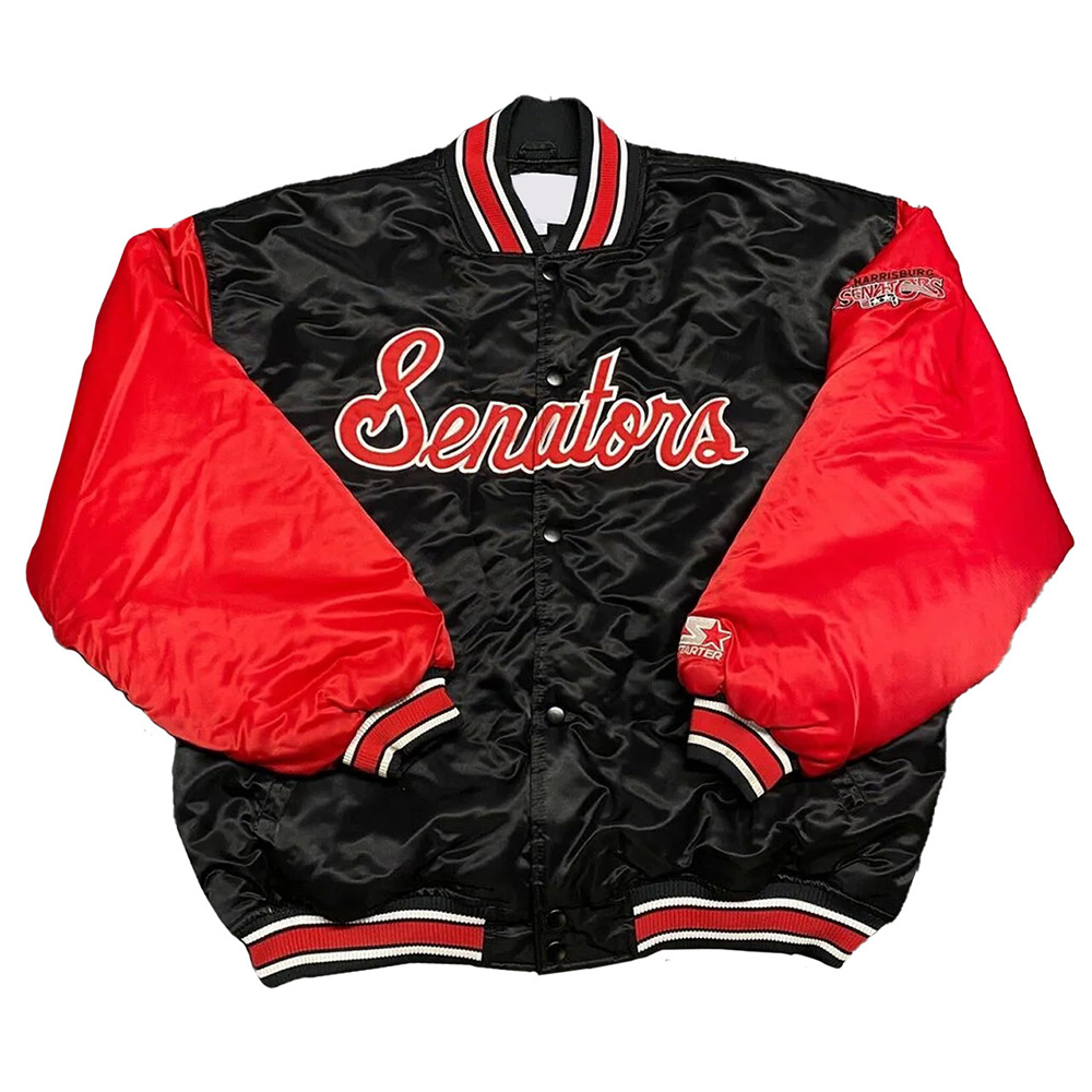 Introducing the perfect blend of style and comfort: that is why our Harrisburg Senators Jacket can be considered the perfect garment for those people who understand that taste and reason can go hand in hand. Made from satin material, this jacket is light in weight yet has a rich look because of its high-shine fabric that can enhance the style quotient of any wear. The interior is covered with soft viscose, which gives warmth during the evening and comfort during the day, so this model is appropriate for both evening and morning.