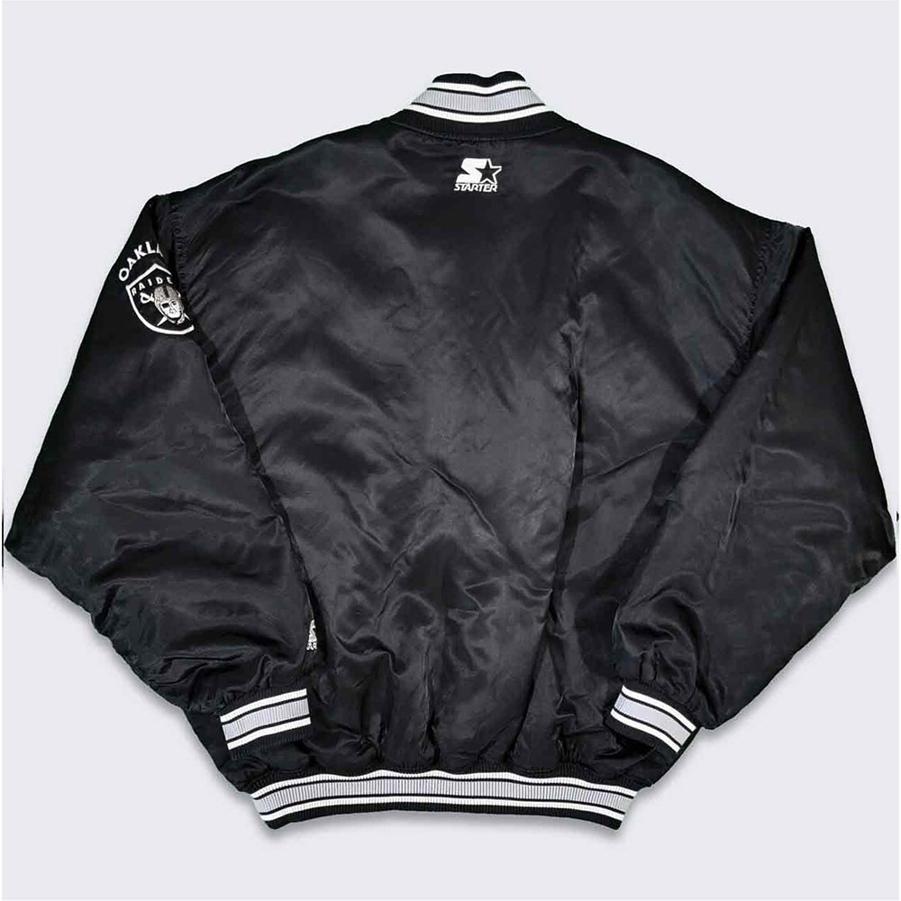 Starter Oakland Raiders 90s Full-Snap Black Satin Bomber Jacket