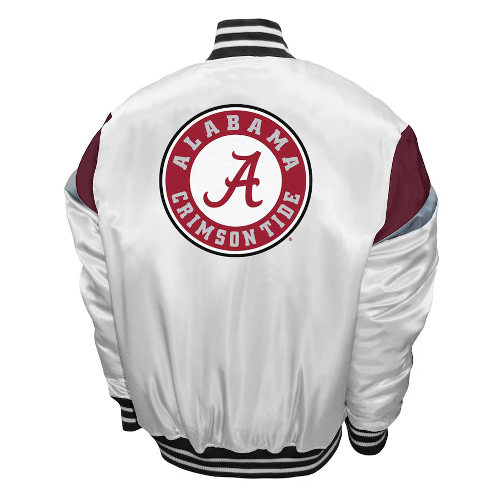 Alabama Crimson Tide Power Full-Snap White Satin Jacket