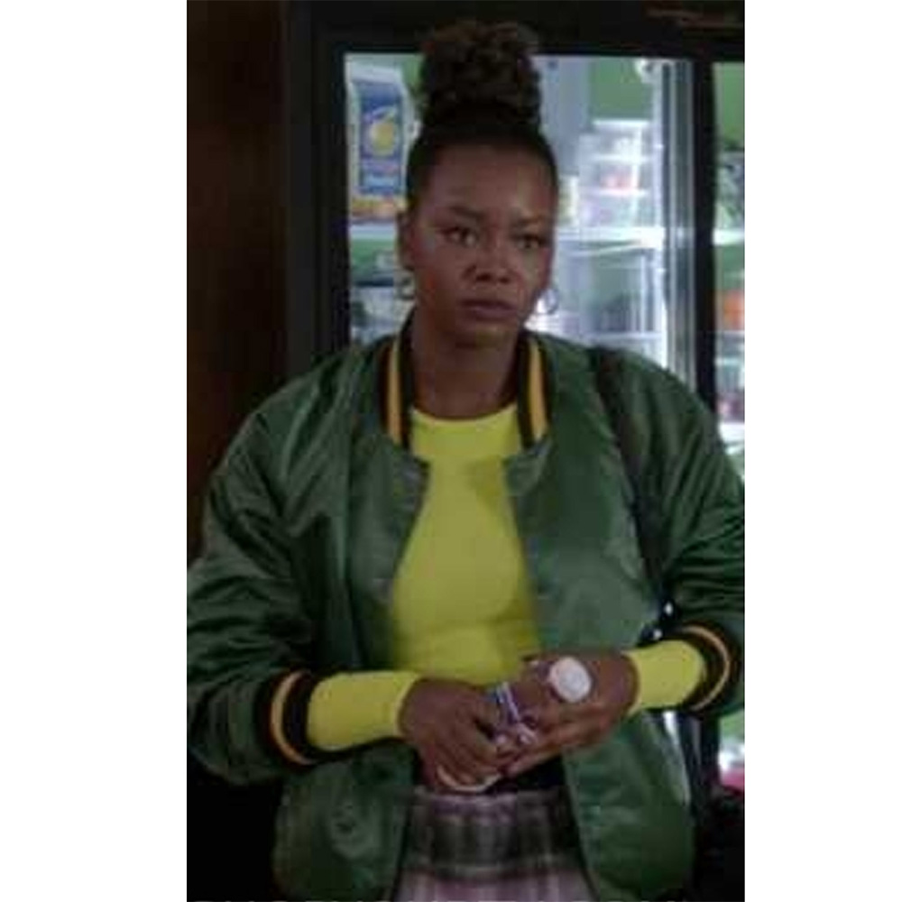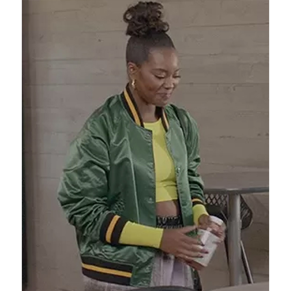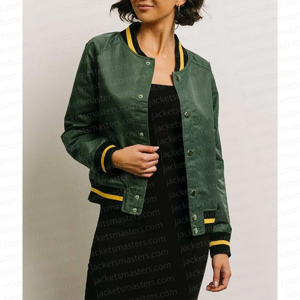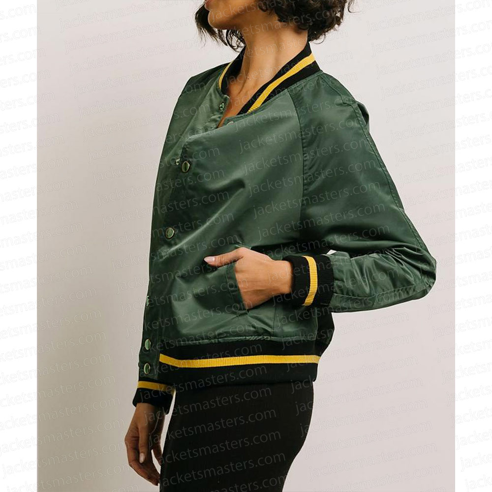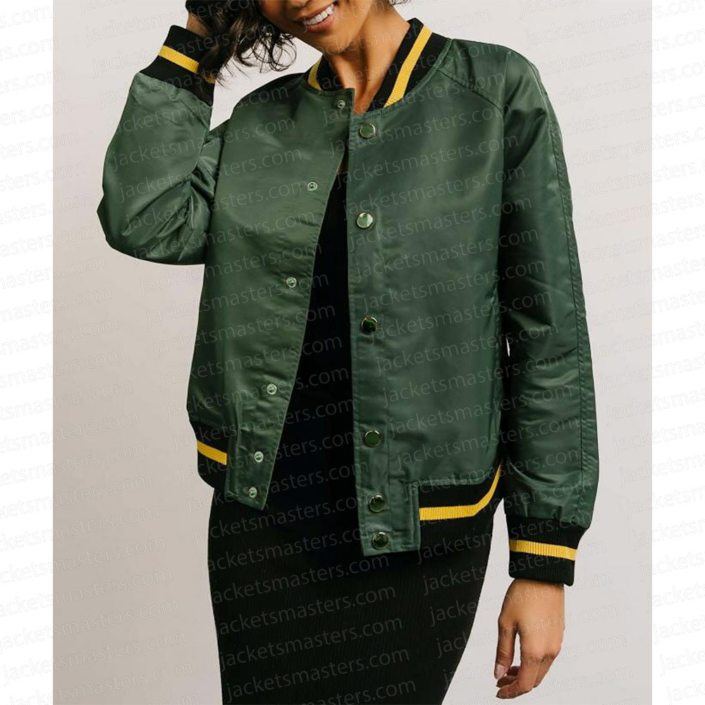 All American Simone Hicks Bomber Green Satin Jacket