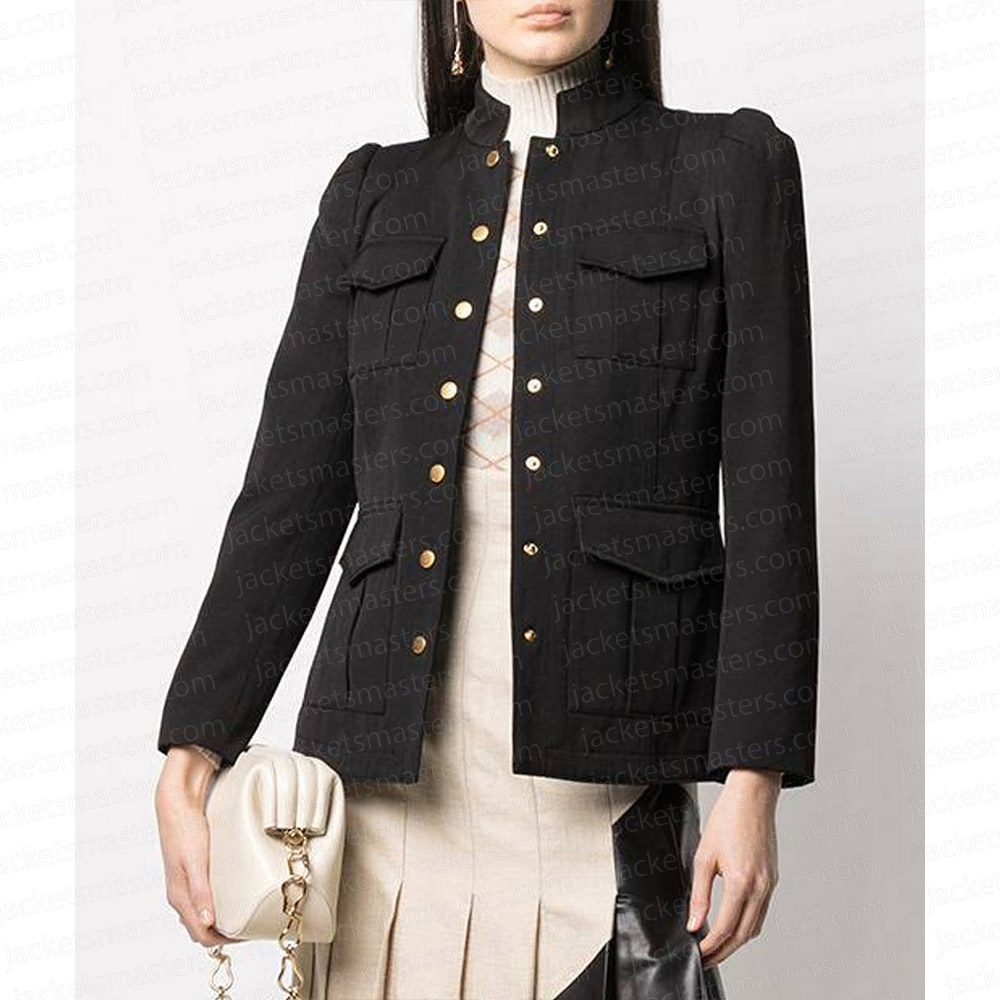Indulge in the allure of the Maggie Palmer jacket meticulously crafted with premium quality wool. Its mesmerizing black color introduces an innovative and stunning appearance that demands attention. The All Rise Suzanne Cryer jacket boasts a erect style collar and a buttoned front closure, combining style and functionality seamlessly. Stay warm and relaxed with its soft viscose inner lining, while the long sleeves with zipper cuffs provide a comfortable and sophisticated fit. The jacket’s two inner and two side pockets offer convenience and practicality. With its fine quality stitching, the Maggie Palmer jacket promises comfort and desirability, making it the perfect choice for any party.