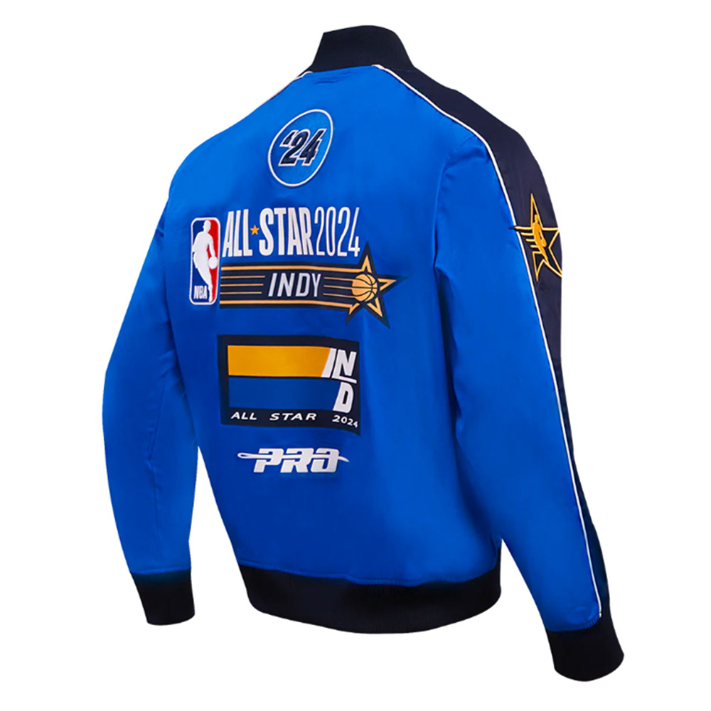 The All-Star Game 2024 royal jacket comes with a full zipper on the front part and thus can be easily worn or zipped on depending on the desired style whether it is to be worn over casual wear or to be zipped for a more fitted style. The sleeves are set to be both loose and close-fitting and there are lettering on the sleeves that give a sporty feel. At the cuffs and the bottom of the jacket there are ribbed materials which not only give it a stylish look but also make NBA All-Star Game 2024 twill jacket comfortable and well-fitting. There are two slanted pockets on the waist and a hidden one inside in order to keep all the stuffs you need.