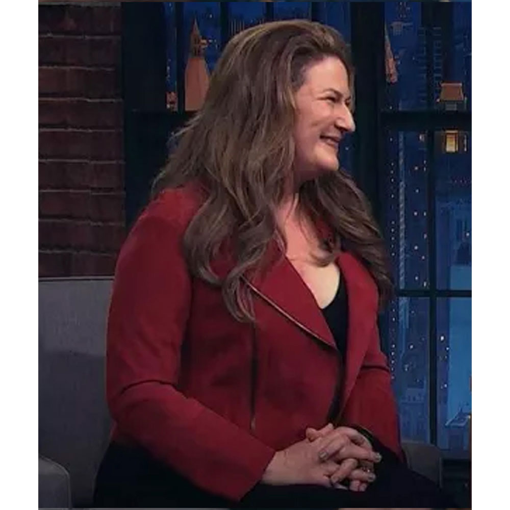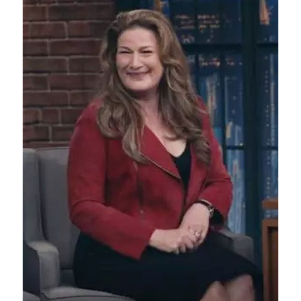 Unleash your style with the Katherine Hastings Red jacket, meticulously crafted from premium quality suede leather. Its glorious red color creates an innovative and striking visual appeal that is simply striking look. This American Auto Ana Gasteyer Suede jacket features a classic lapel style collar and a branded YKK zipper front closure, marrying elegance with convenience. The soft viscose inner lining guarantees warmth and relaxation, while the long sleeves with zipper cuffs provide a comfortable and refined fit. With two inner and two side pockets, this Katherine Hastings Red jacket offers practicality and functionality. The fine quality stitching ensures both comfort and desirability, making it an ideal choice for parties and events.