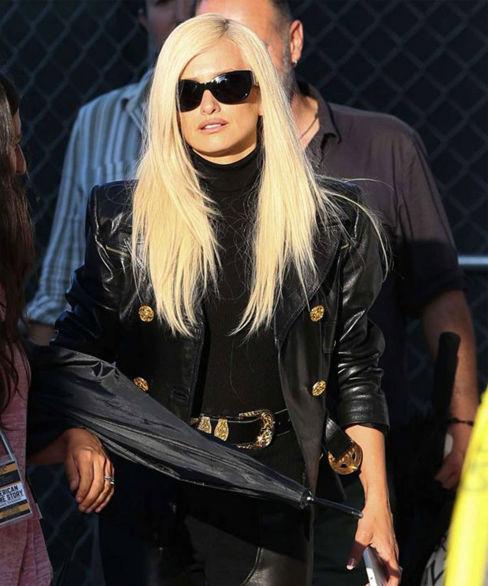 The outside of the Donatella Versace Leather Jacket is fabricated from high-quality genuine leather while its inside has a soft viscose lining for warmth and comfort. The stunning black jacket has a lapel style collar with a double breasted golden buttoned closure. The sleeves of the jacket are full with open hem cuffs. The American Crime Story Donatella Versace Leather Jacket is finely stitched with the perfection of every detail.