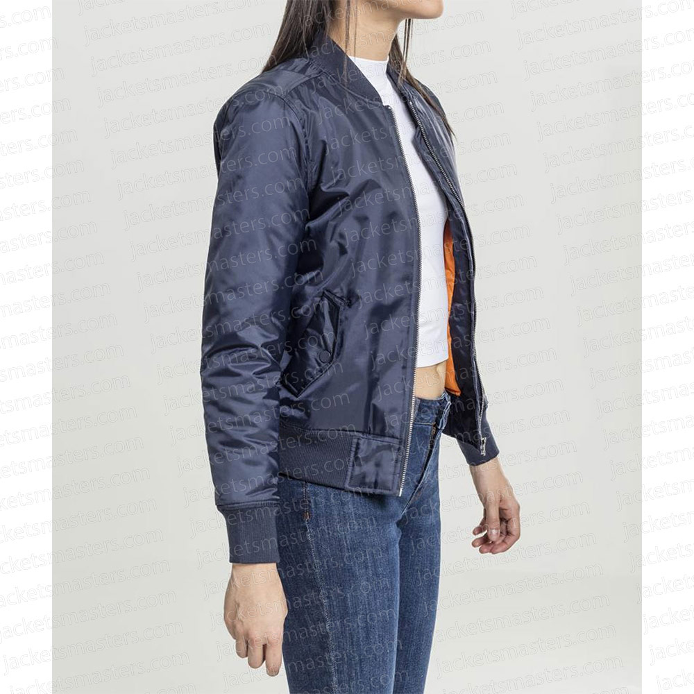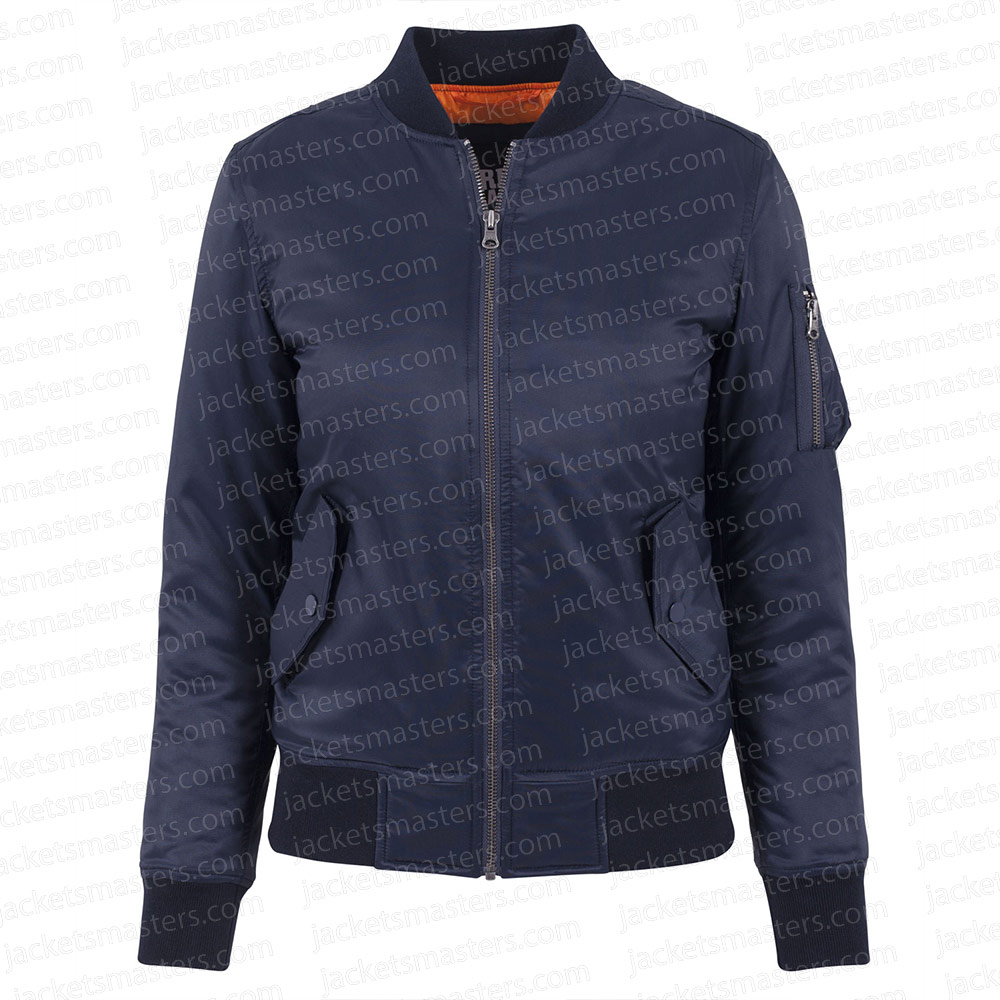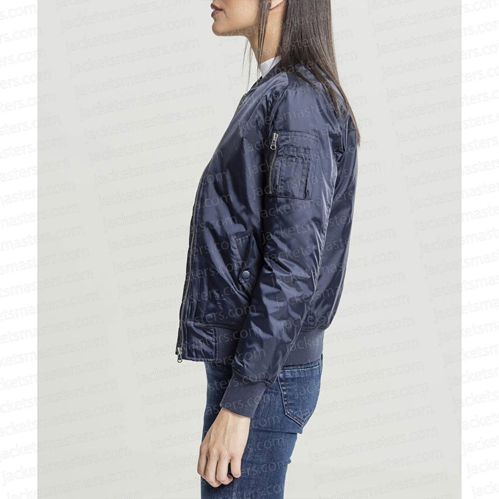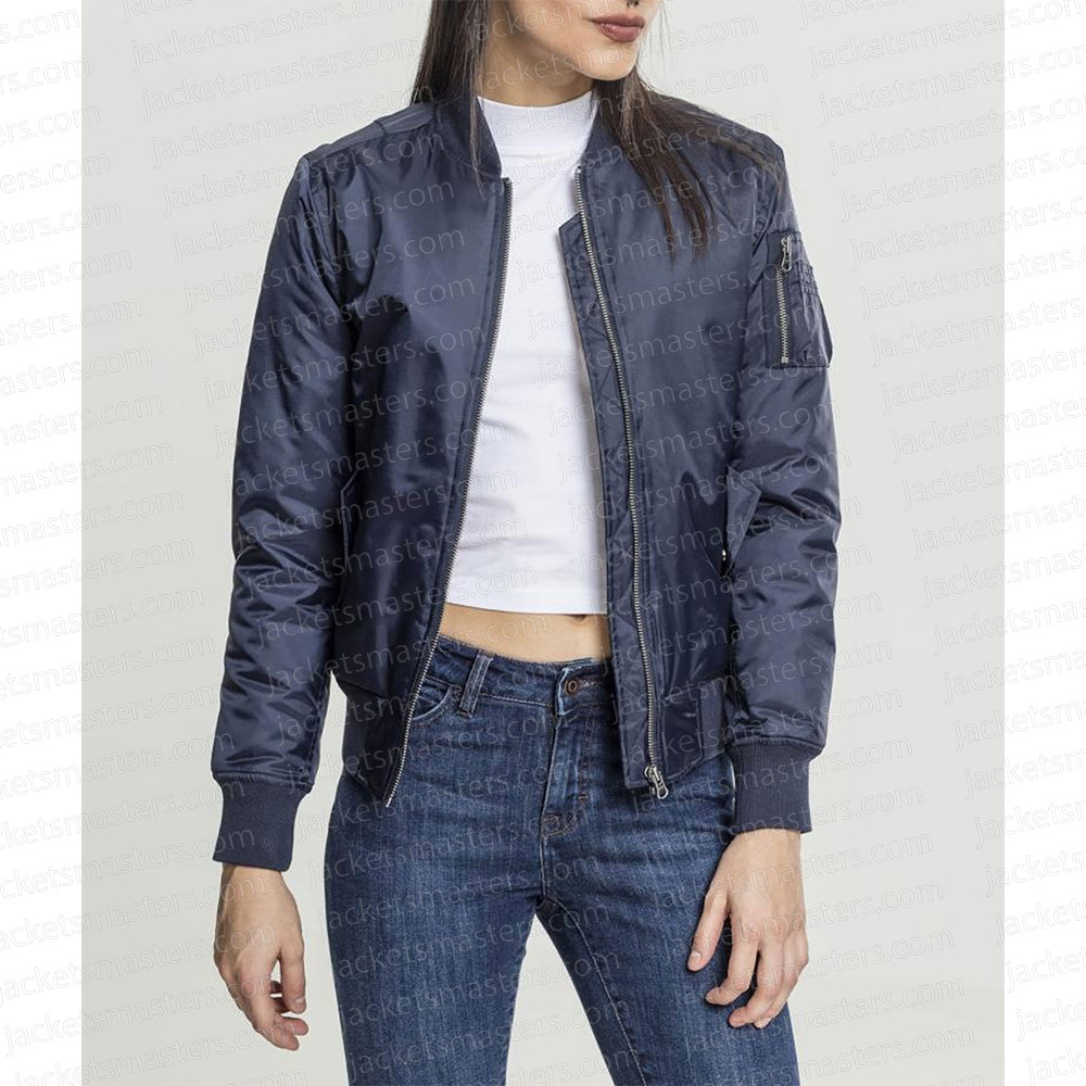 American Horror Story Monet Tumusiime Bomber Navy Satin Jacket