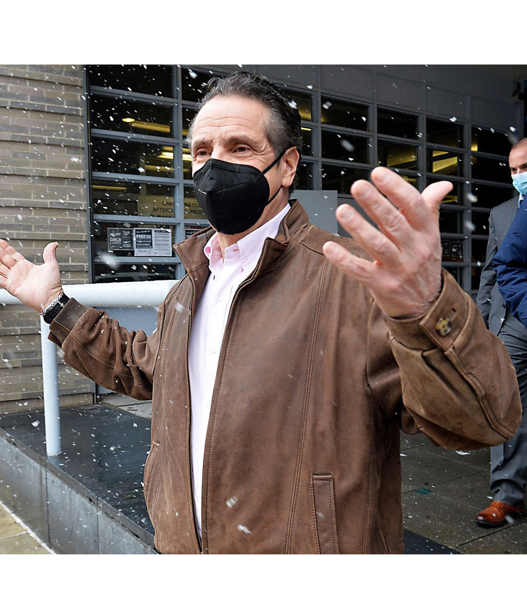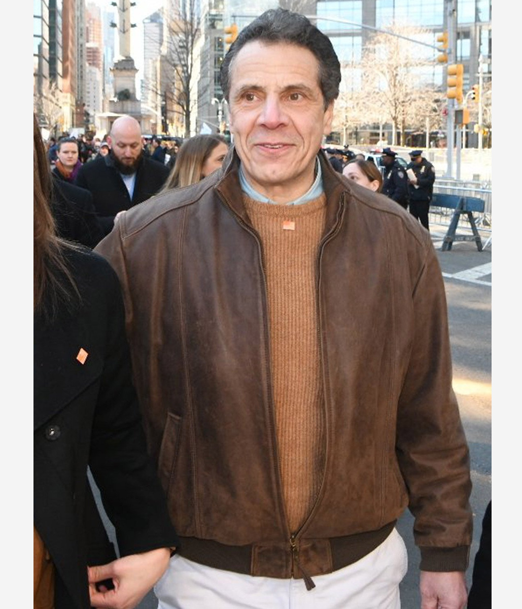 NY Governor Andrew Cuomo Bomber Brown Leather Jacket