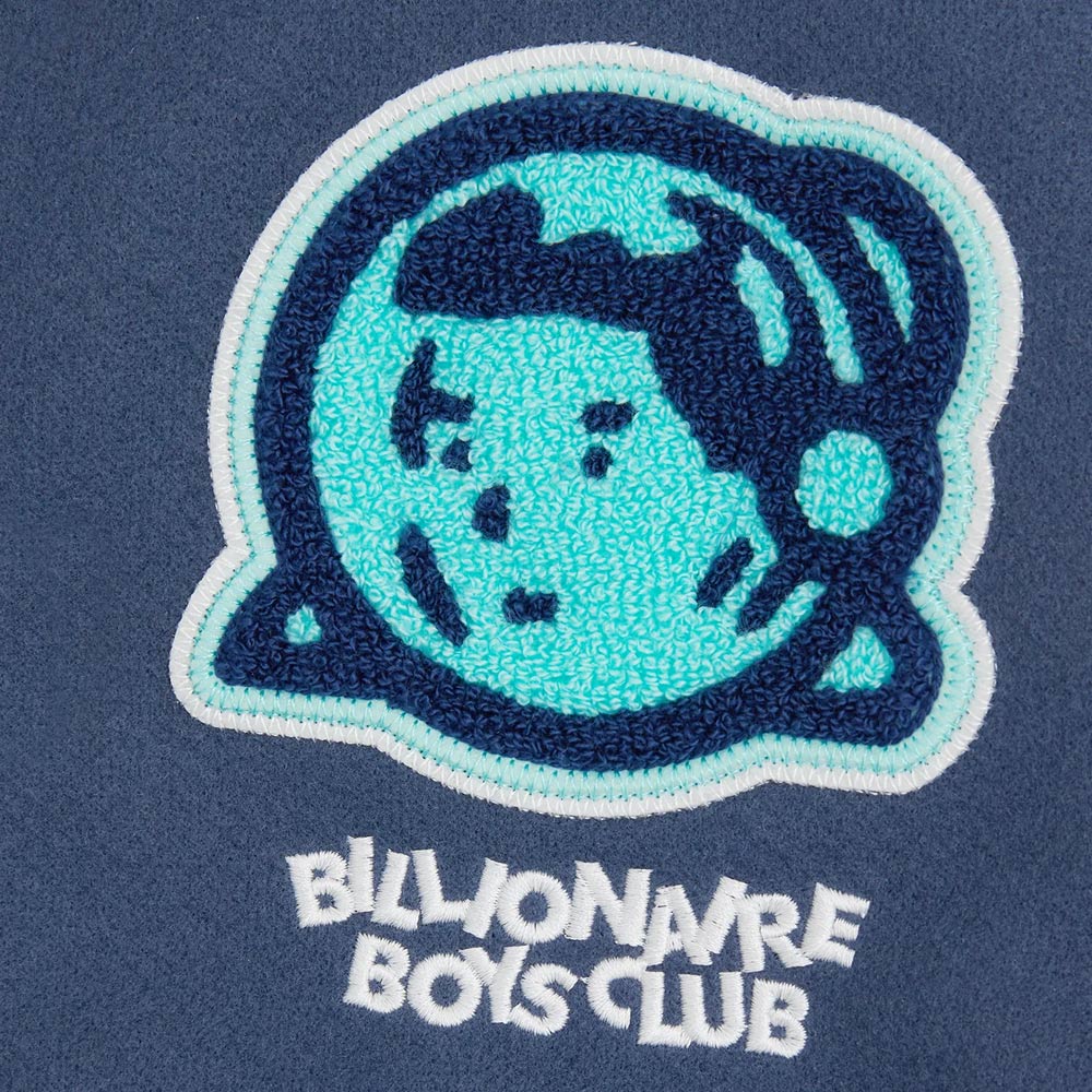In terms of design, there are two slanted waist pockets to help you keep your belongings and two inner pockets for extra safety. The chenille lettering and logo on the chest give it a touch of class and the “Billionaire Boys Clubs” on the back is a strong reaffirmation of fashion luxury. Get an Astro Chenille Logo Varsity Jacket that is both preppy and luxury, the way only Billionaire Boys Club can make it.