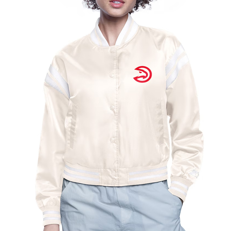 Atlanta Hawks Printed Logo Full-Snap Varsity Satin Jacket