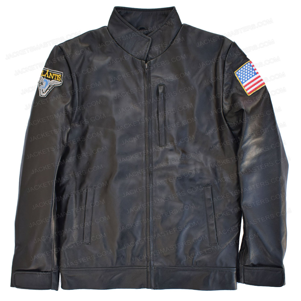 The Stargate Atlantis Leather Jacket is fabricated from good-quality genuine or faux leather. The alluring black coat has a smart stand-up style collar with a YKK zipper closure. The sleeves of the John Sheppard Jacket are full with stylish half-folded open hem cuffs. The inside of the coat has a full rayon lining for warmth and comfort. To keep things the jacket contains two side waist midriff pockets and one zipper pocket on chest. The American flag logo on left arm and military patch on right arm of the jacket are its eye-catching features. The John Sheppard Stargate Atlantis Jacket is finally stitched with the perfection of every detail.
