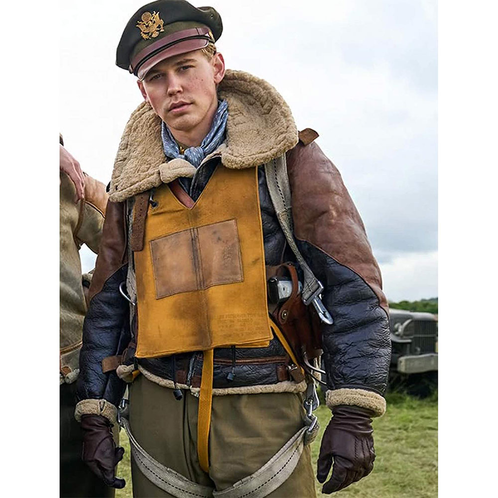 Austin Butler Masters of The Air Gale Cleven Brown Leather Shearling Jacket