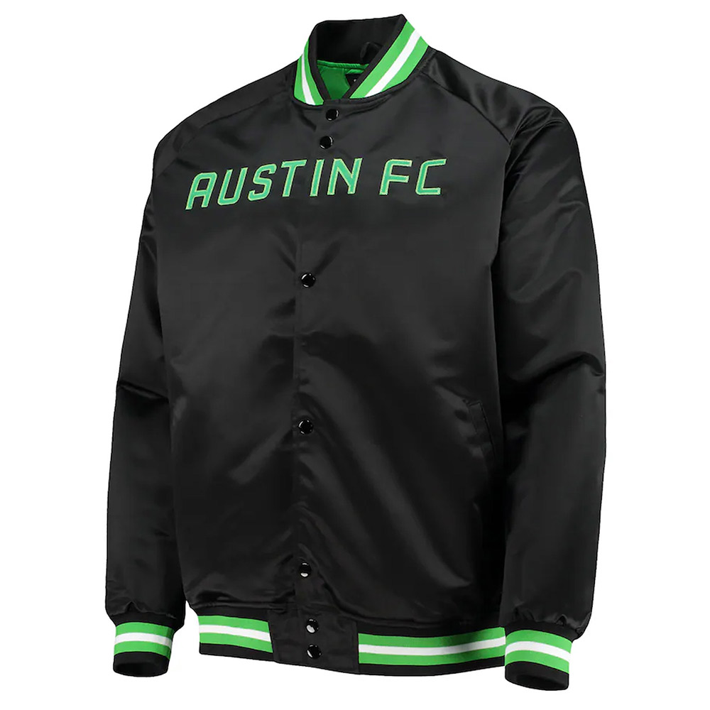 Austin FC Black Full-Snap Raglan Satin Jacket