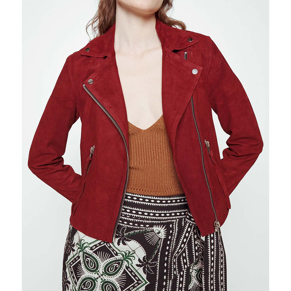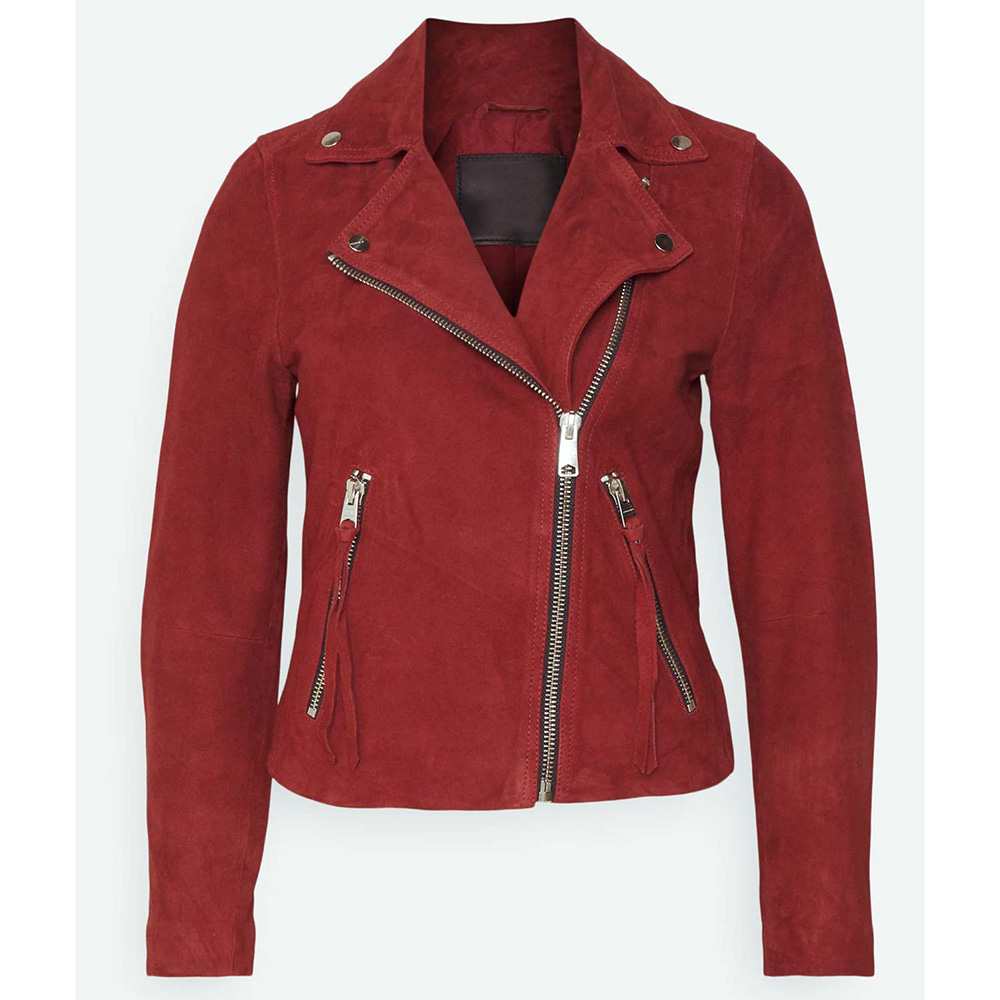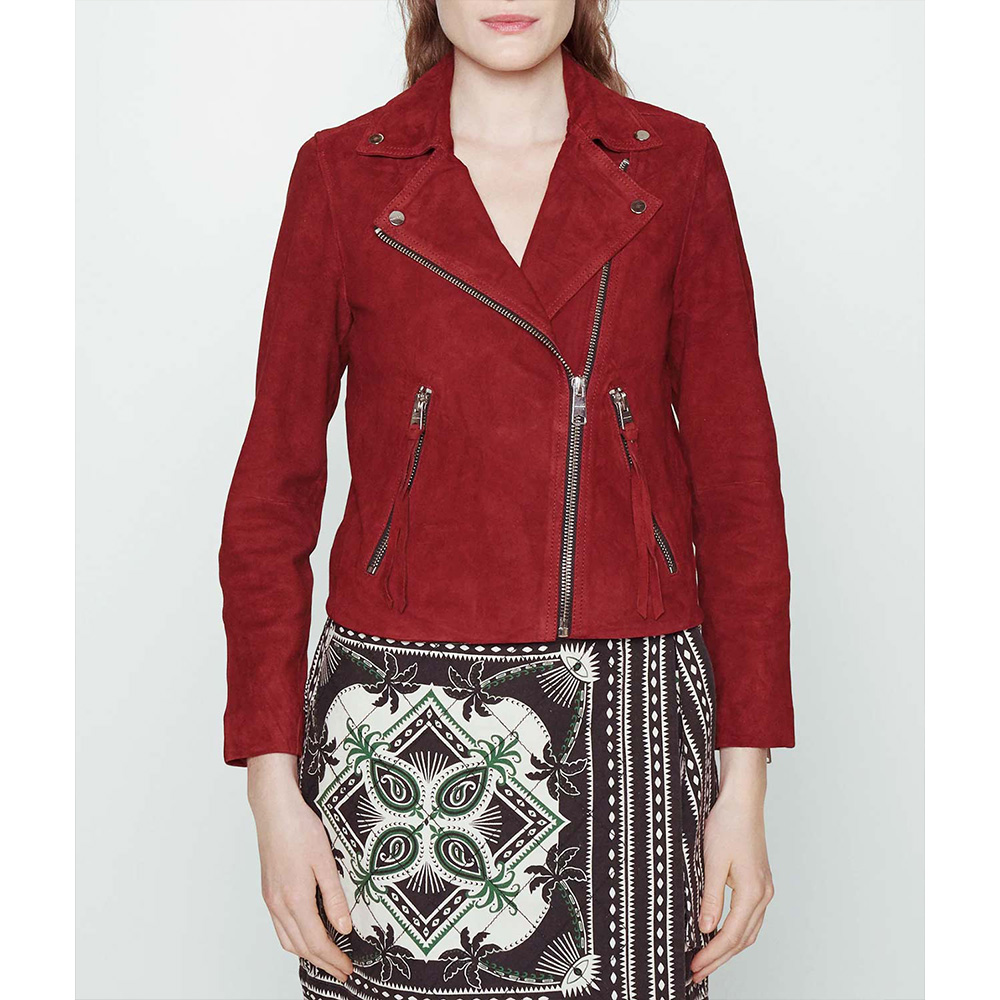 Annaleigh Ashford B Positive S02 Gina Dabrowski Red Biker Suede Jacket