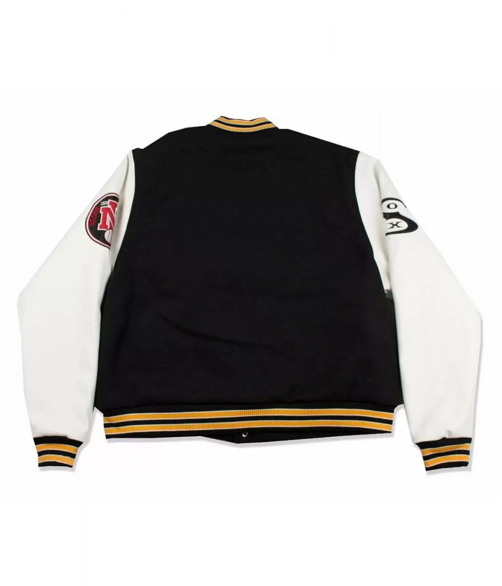 The Baltimore Black Sox varsity jacket body made from high quality wool and sleeves made from genuine leather. The jacket is available in a glorious white and black color combination, which gives it an innovative and attractive look. The collar of the jacket is rib-knitted style. It has a snap tab buttoned front closure. A soft viscose inner lining of the jacket keeps you calm and relaxed. The sleeves of the Baltimore Black Sox Black and White Varsity jacket are long ends with rib-knitted cuffs. The jacket has two side waist pockets for keeping stuff. The fine quality stitching of the Baltimore Black Sox varsity jacket makes it durable and desirable to wear. The jacket is an ideal choice for casual wear and sports lovers.