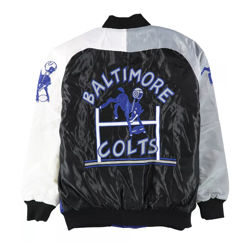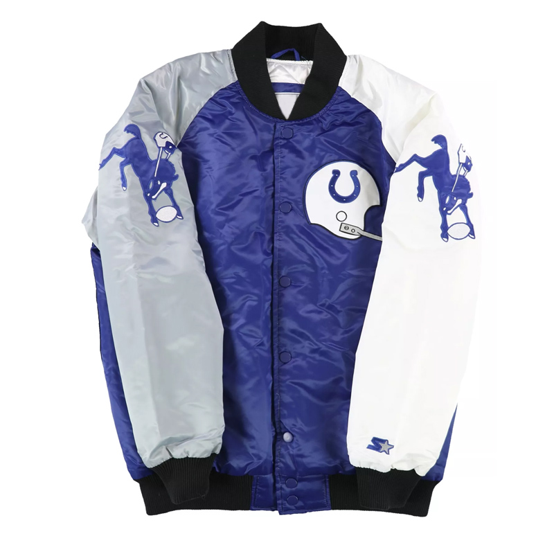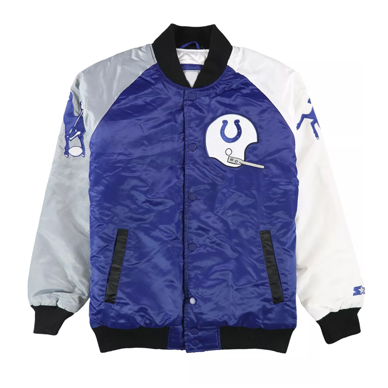 Get yourself back in the vintage football history with the Baltimore Colts The Reliever Jacket. It is unisex and an excellent combination of the retro elegance and the modern trend. It is made of high grade satin and gives a shiny touch that can make you stand out from the rest. A blue color which is deep and shows respect to the traditions of the Baltimore Colts that was captured by the team’s management.