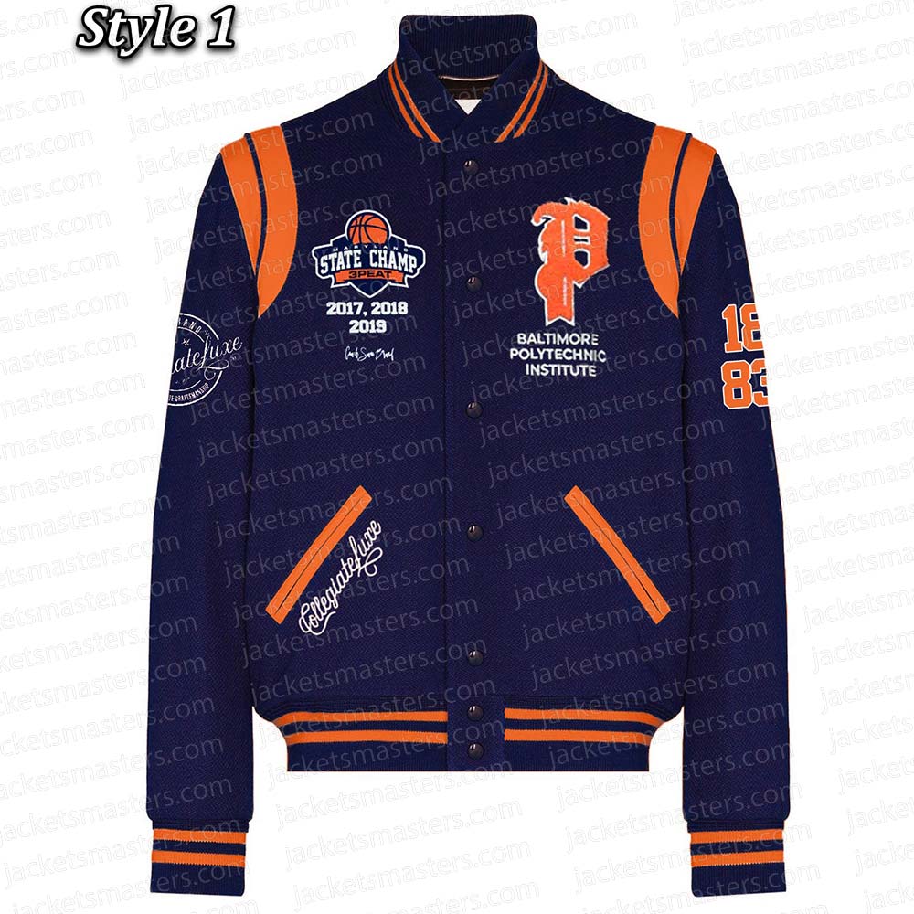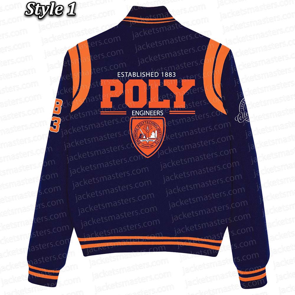 Amplify your style mastery with the Baltimore Polytechnic Institute Varsity jacket, an emblem of sophistication meticulously tailored from premium-grade wool. Its captivating shade of navy blue radiates innovation, casting an irresistible allure that commands attention. The rib-knitted collar and snap-tab buttoned front closure seamlessly merge fashion and function, ultimately shaping your signature appearance with a distinct flair. Wrapped in the luxurious comfort of a viscose inner lining, you indulge in enduring relaxation and opulence that withstands the test of time. The elongated sleeves, adorned with exquisite rib-knitted cuffs, infuse an air of finesse, elevating your elegance to ethereal heights. Complemented by an inner pocket and two outer pockets, this Baltimore Polytechnic Institute Navy Varsity Wool jacket epitomizes practicality while embracing your unique style. Experience unparalleled comfort and allure, as the meticulous stitching pays homage to craftsmanship that sets it apart. Crafted to leave an indelible mark at gatherings, this Baltimore Polytechnic Institute Varsity jacket mirrors your confident individuality and sets a fresh benchmark for trendsetting brilliance an emblem of your unparalleled fashion sense.