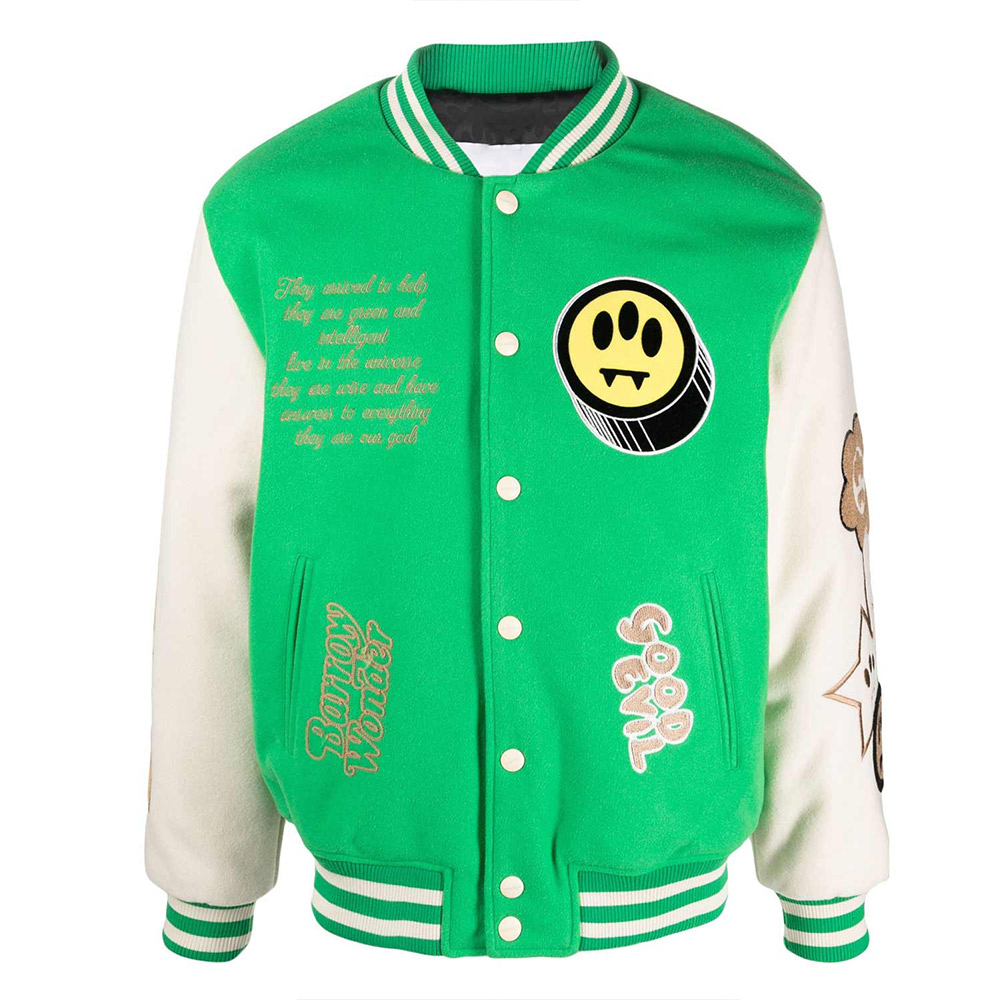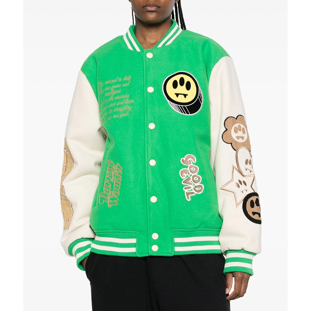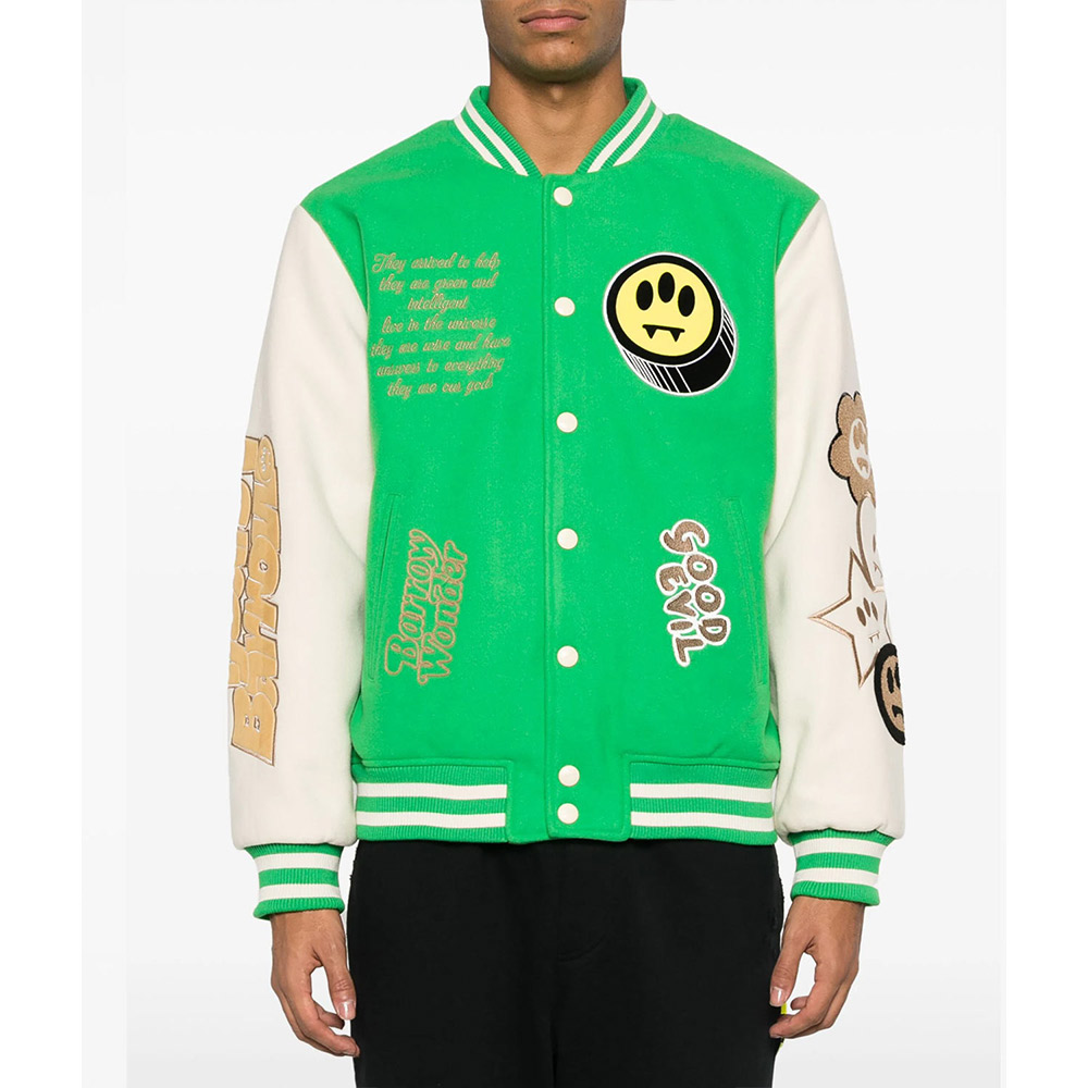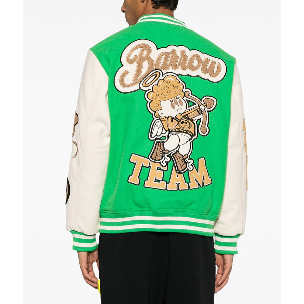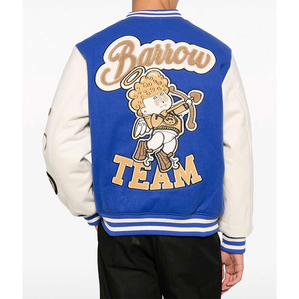Introducing the epitome of versatility and style: the Barrow Varsity Jacket, a true masterpiece designed to transcend gender boundaries. Crafted with precision and finesse, this jacket is a harmonious blend of wool and genuine leather, offering unparalleled comfort and sophistication. Its timeless design is available in three captivating color combinations: blue and white, green and white, or black and white, each exuding its unique charm.
