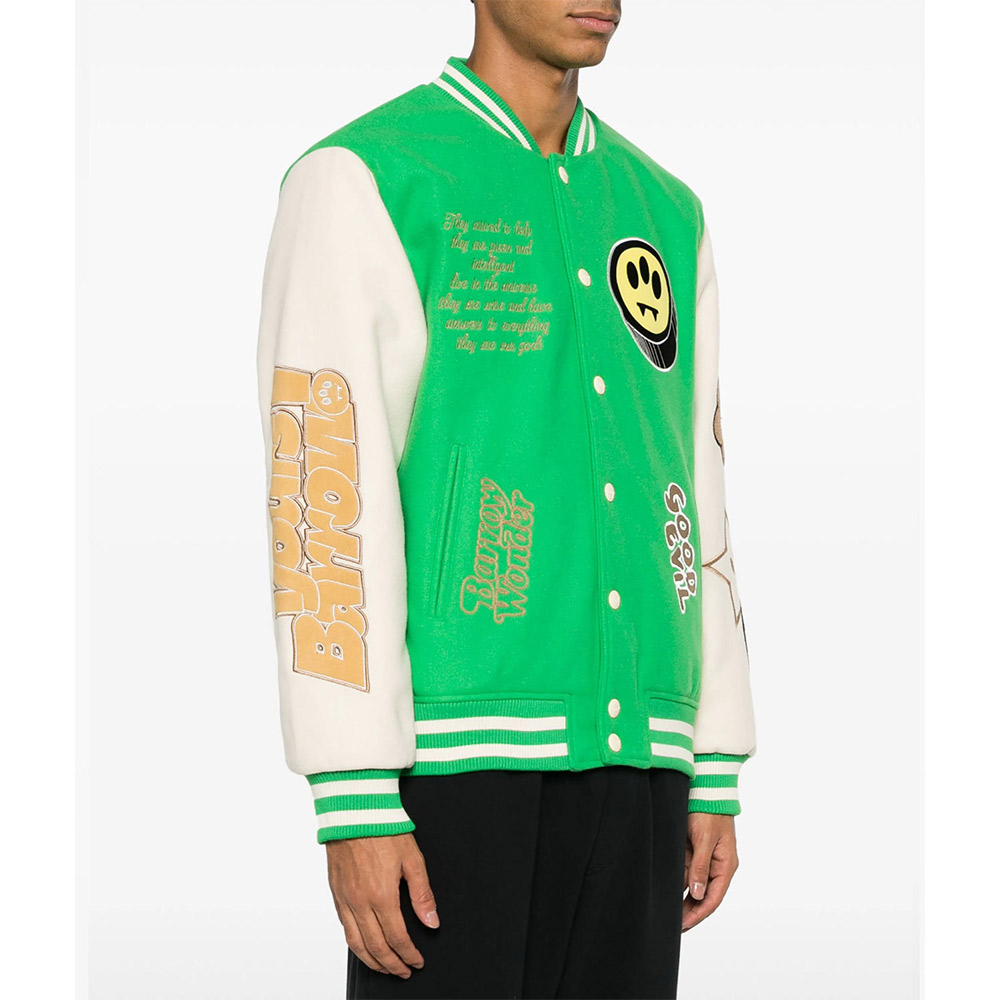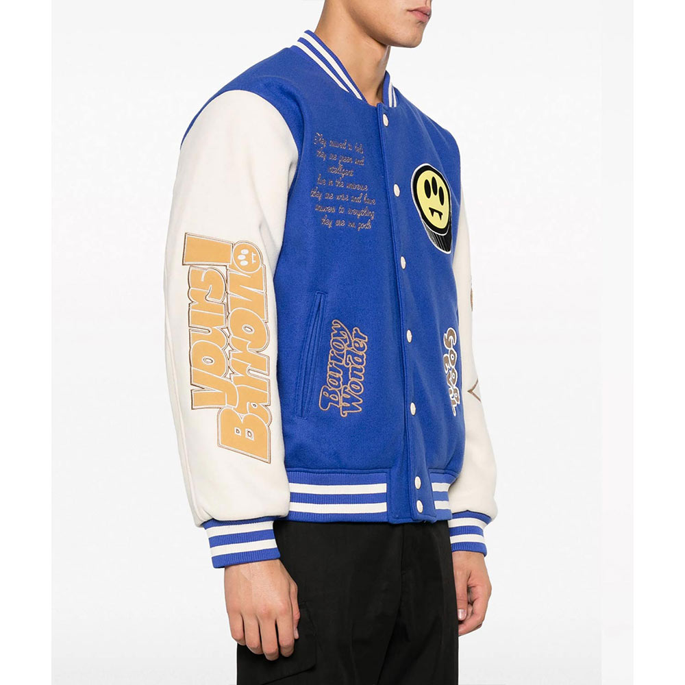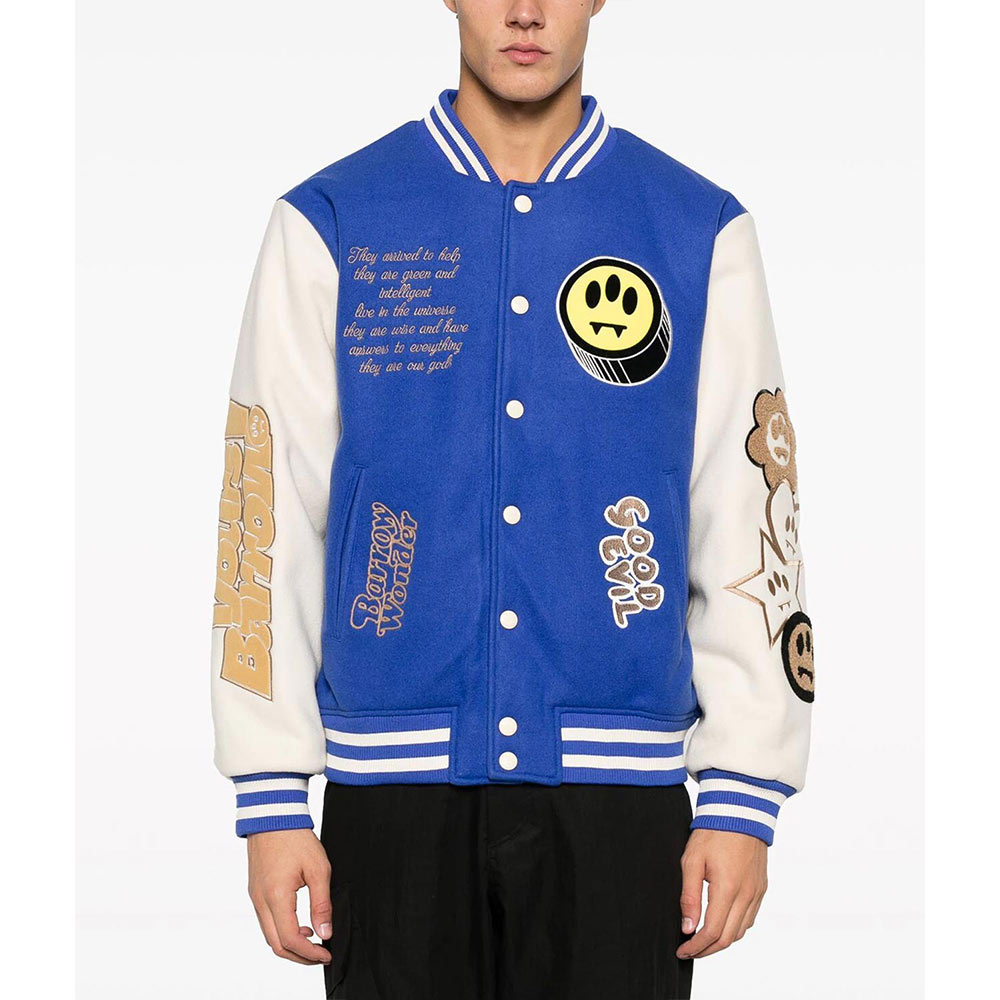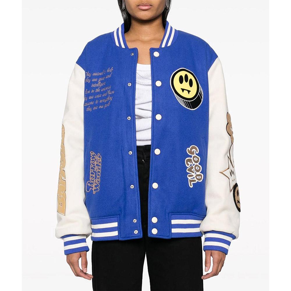 Introducing the epitome of versatility and style: the Barrow Varsity Jacket, a true masterpiece designed to transcend gender boundaries. Crafted with precision and finesse, this jacket is a harmonious blend of wool and genuine leather, offering unparalleled comfort and sophistication. Its timeless design is available in three captivating color combinations: blue and white, green and white, or black and white, each exuding its unique charm.