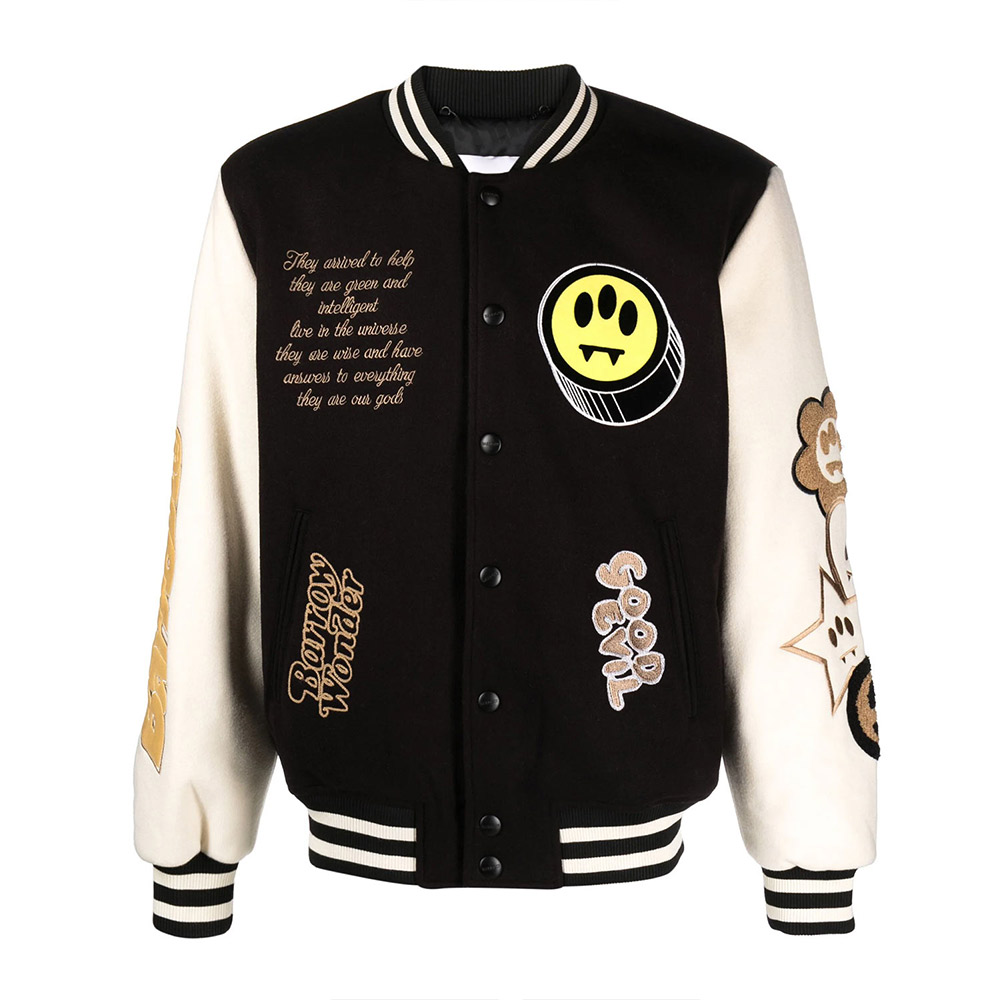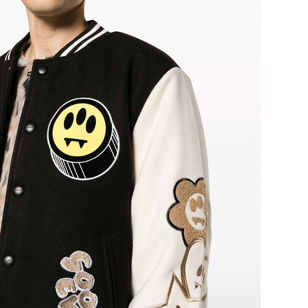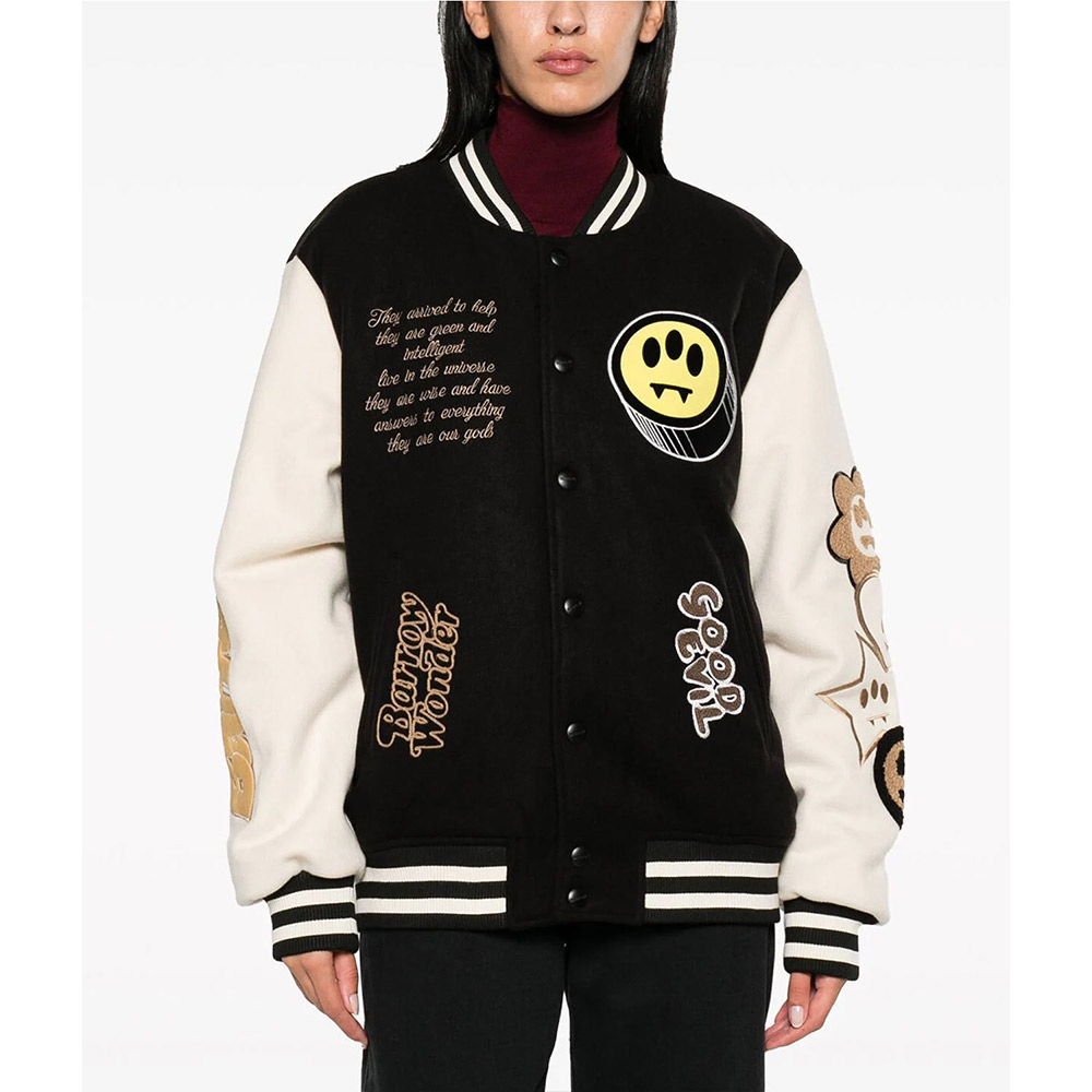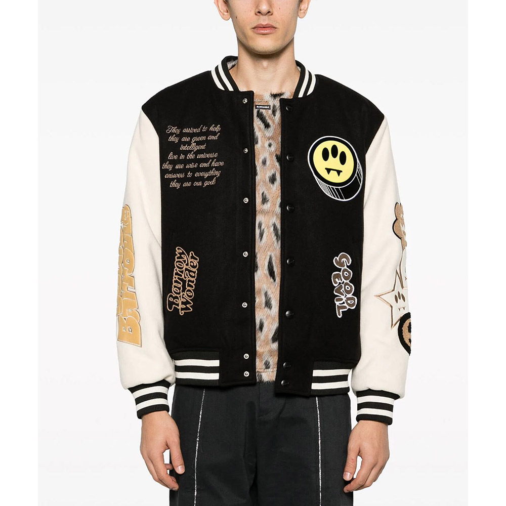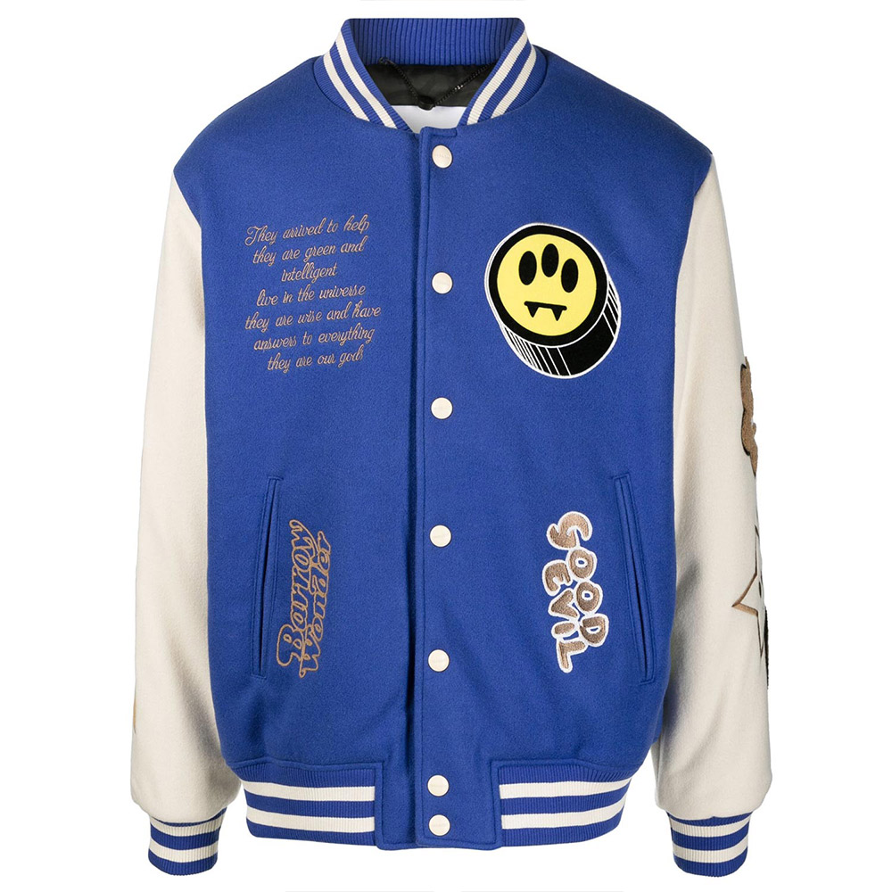 Introducing the epitome of versatility and style: the Barrow Varsity Jacket, a true masterpiece designed to transcend gender boundaries. Crafted with precision and finesse, this jacket is a harmonious blend of wool and genuine leather, offering unparalleled comfort and sophistication. Its timeless design is available in three captivating color combinations: blue and white, green and white, or black and white, each exuding its unique charm.