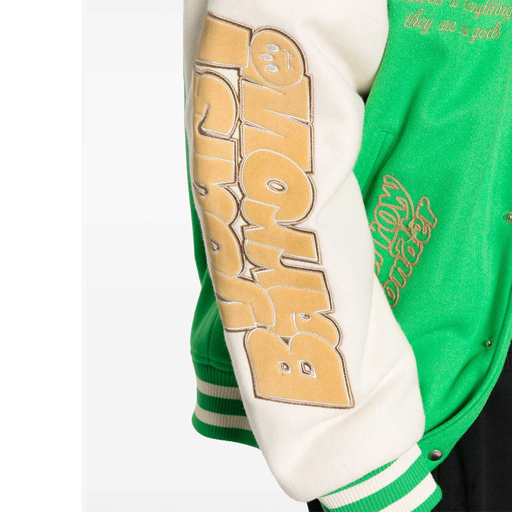 Embroidered Logo Barrow Full-Snap Wool/Leather Varsity Jacket