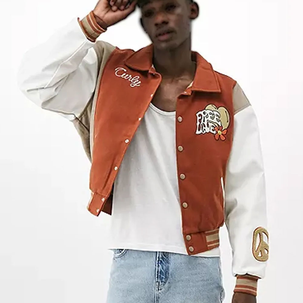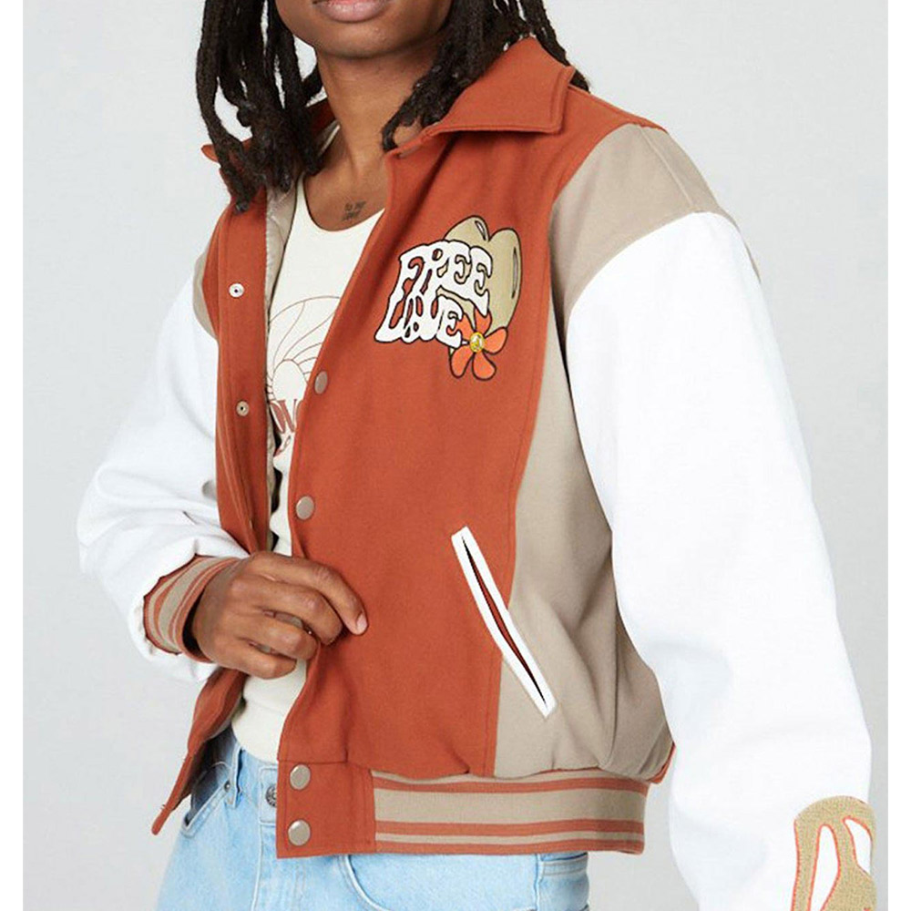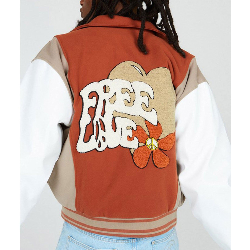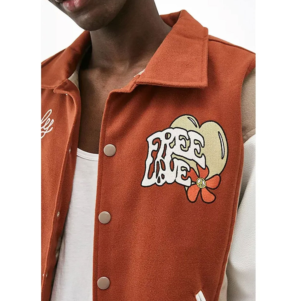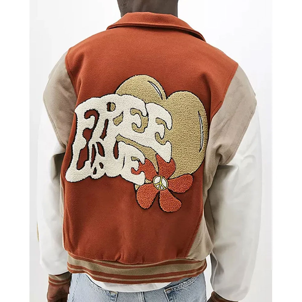 Lovestruck High Basit Eniafe Free Love Brown Wool/Leather Varsity Jacket