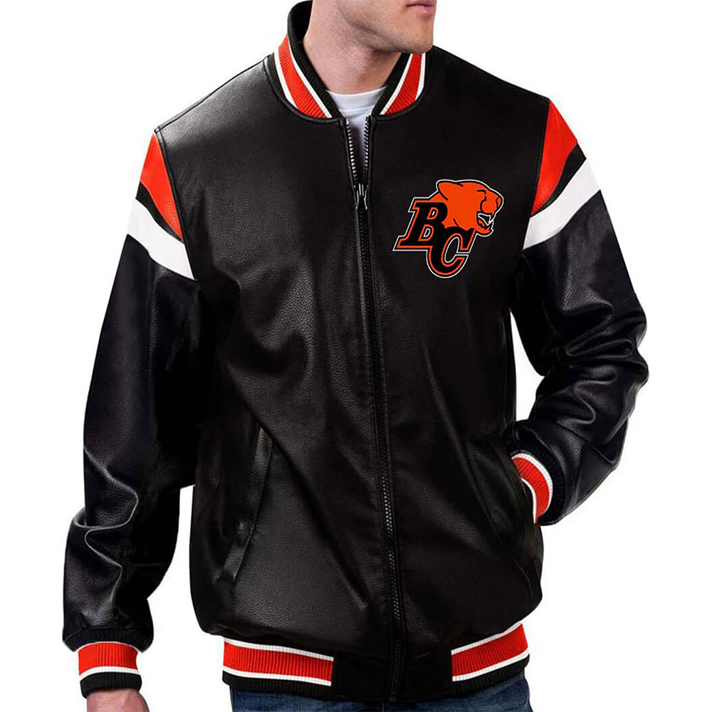 It has ribbed cuffs and hemline fit to provide a good and snug hold. It involves ensuring that the team logo is emblematic on the front part of the attire and on the back part to enable a fan of the BC Lions identify with the team. Practicality is also observed with two slanted waist pockets and an inner pocket available to store your items. Relatively fine sewing is done all over the jacket and this makes the BC Lions Varsity Leather Jacket to be of high quality and durable for any fan that would love to wear it.