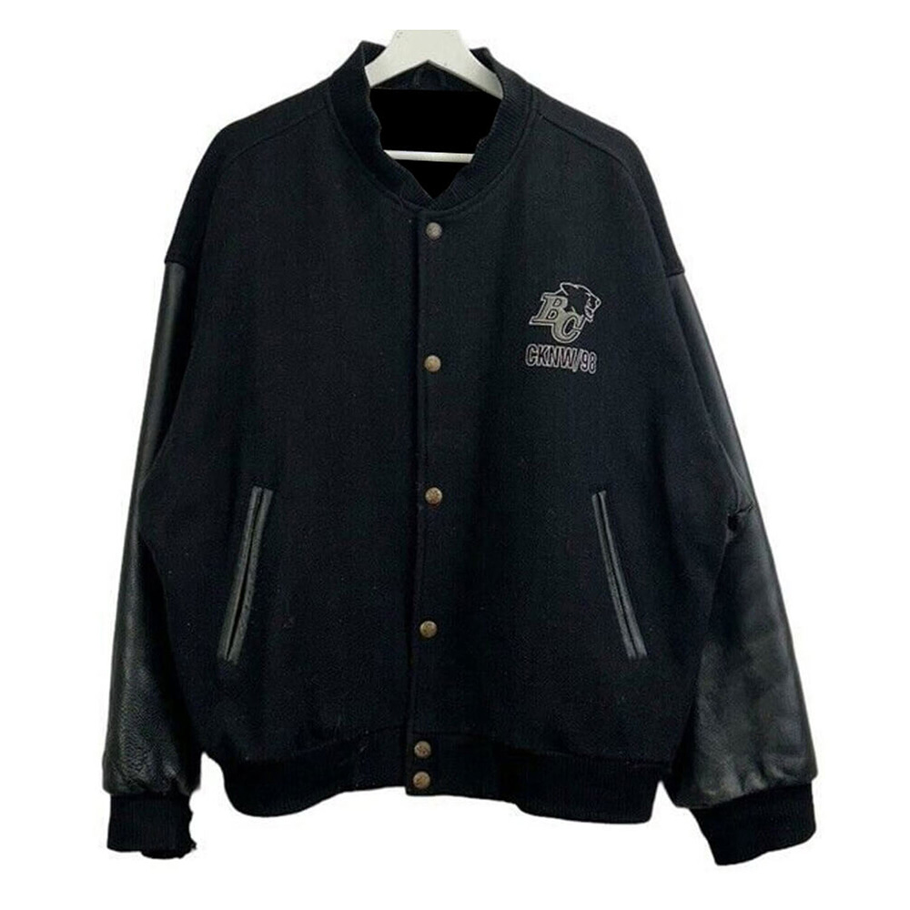 BC Lions CKNW-98 Full-Snap Varsity Black Wool/Leather Jacket