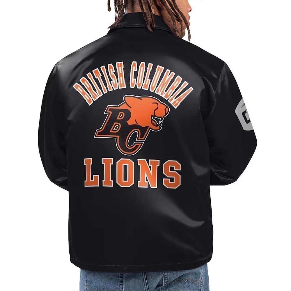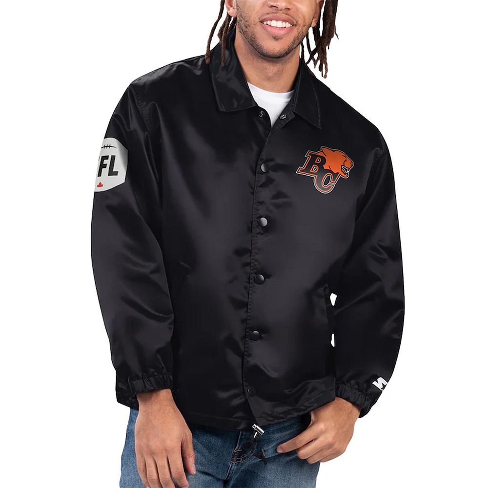 Black Option Route BC Lions Coaches Full-Snap Satin Jacket