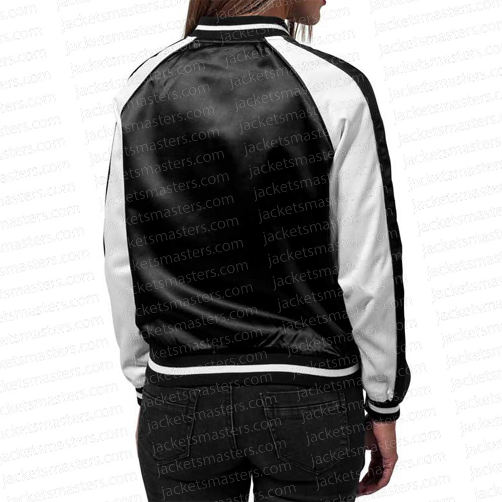NY Becky G Black and White Full-Zip Varsity Satin Jacket