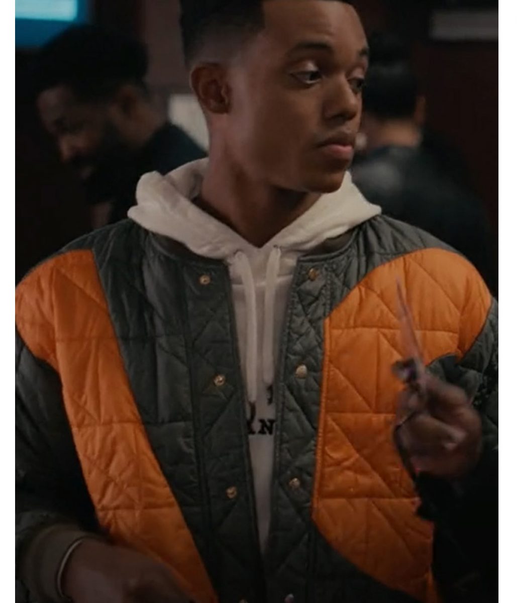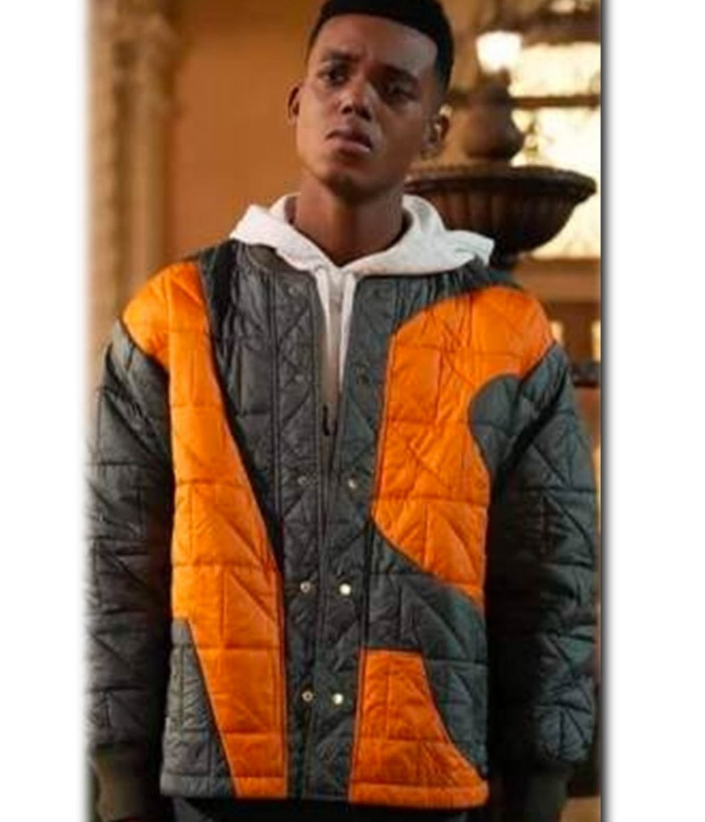 The Jabari Banks Bel-Air quilted jacket is made from high-quality polyester fabric. The jacket is available in majestic grey and orange color, which gives it an innovative and enchanted look. The collar of the jacket is rib-knitted style. It has a zipper front closure. A soft viscose inner lining of the jacket keeps you warm and relaxed. The sleeves of the Will Smith quilted bomber jacket are long ends with rib-knitted cuffs. The jacket has two front slant pockets and two inner pockets for keeping stuff. The fine quality stitching of the Jabari Banks Bel-Air quilted jacket makes it durable and desirable to wear. The jacket is an ideal choice for stylish men and Bel-Air fans.
