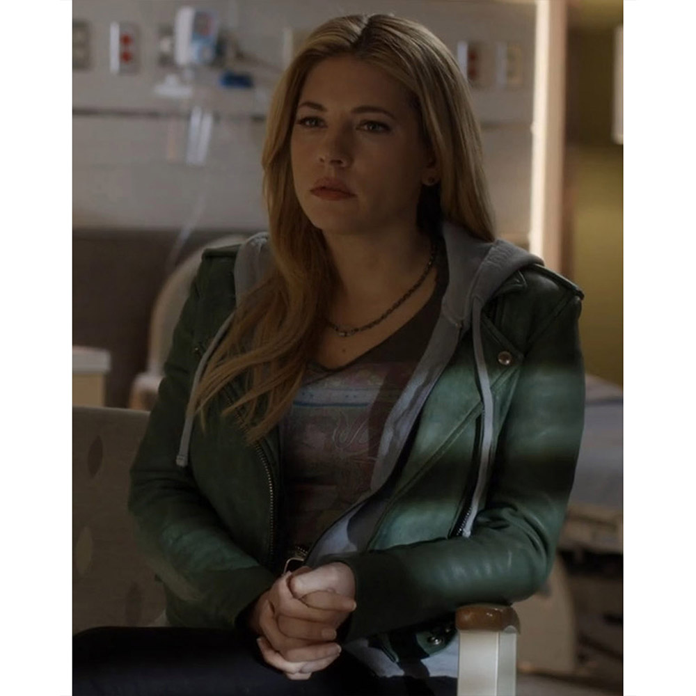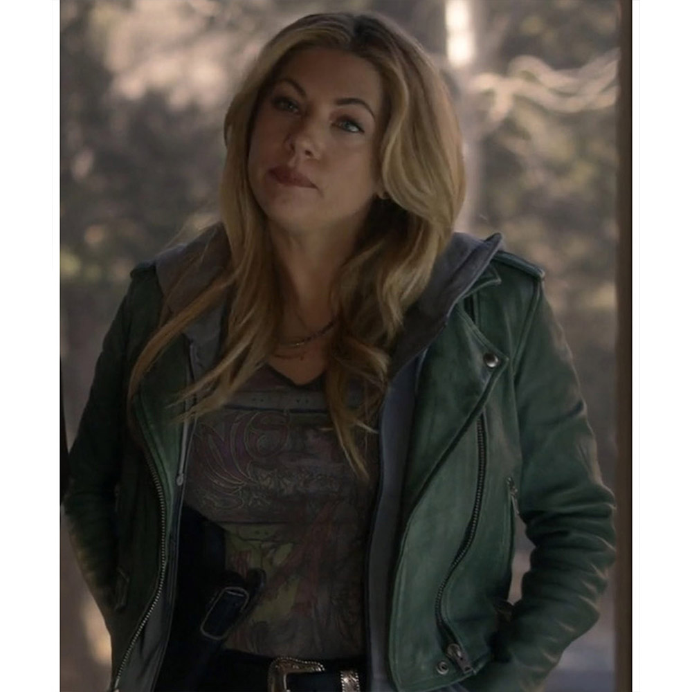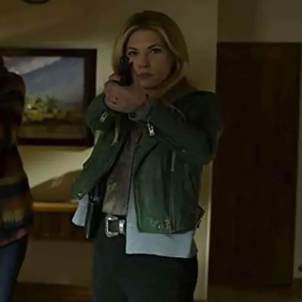 Katheryn Winnick Big Sky S03 Jenny Hoyt Biker Green Leather Jacket