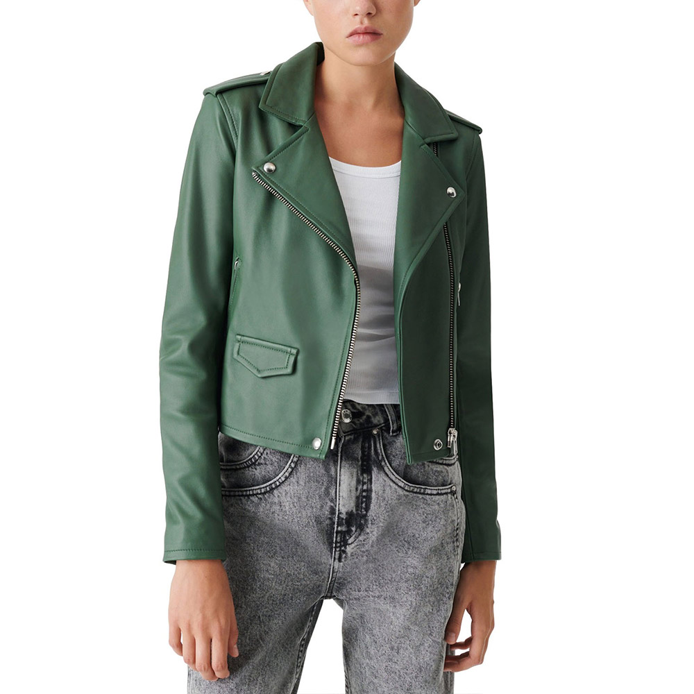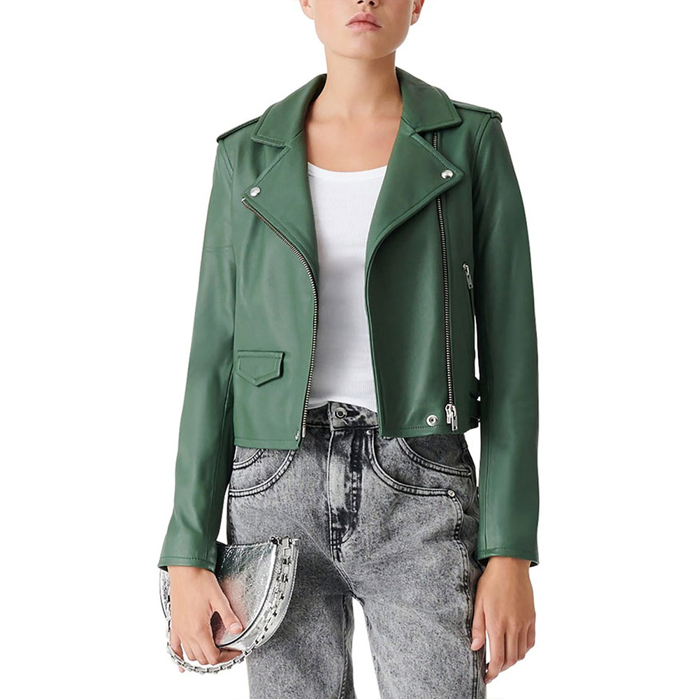 Dare to embrace the avant-garde with the Jenny Hoyt Green Leather jacket, a rebellious testament to the power of unconventional fashion crafted from genuine leather. Its captivating green color defies the norms, exuding an air of mysterious allure that ignites curiosity. This Big Sky Season 3 Katheryn Winnick Green Leather jacket challenges traditional collar design, with its lapel style collar that defies symmetry and embraces asymmetry as a bold statement of individuality. The asymmetrical zipper front closure becomes a rebellious symbol, inviting you to break free from conformity and embark on a journey of self-expression. With its soft viscose inner lining, the Jenny Hoyt Green Leather jacket becomes your personal sanctuary, where comfort and style converge in perfect harmony. Unleash your inner rebel and make a fearless fashion statement that sets you apart from the crowd.