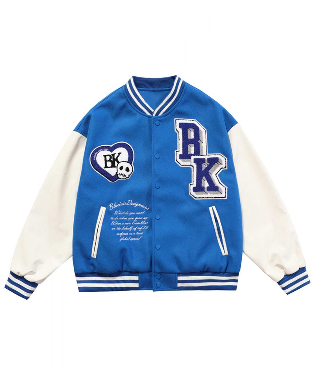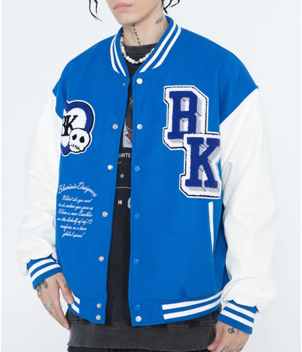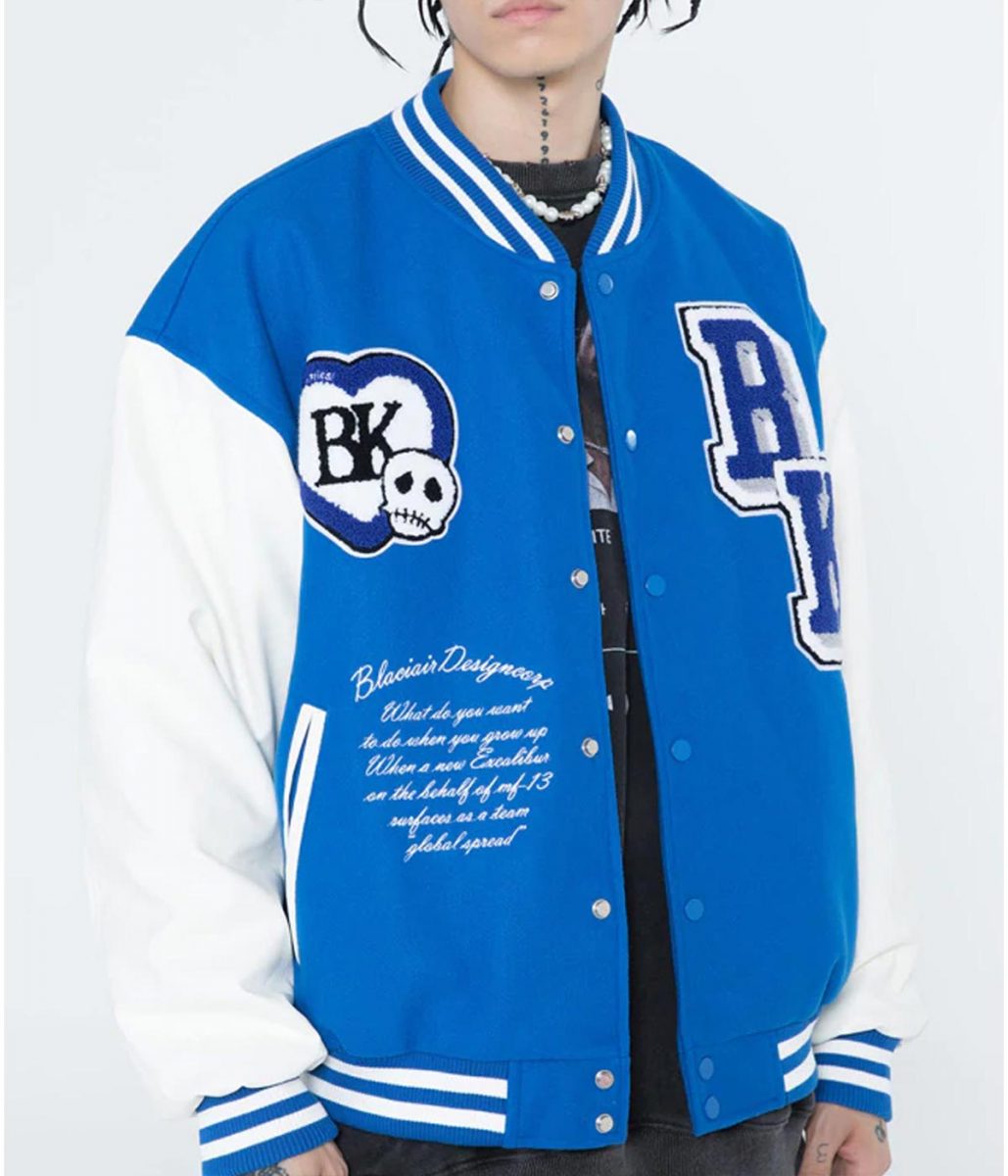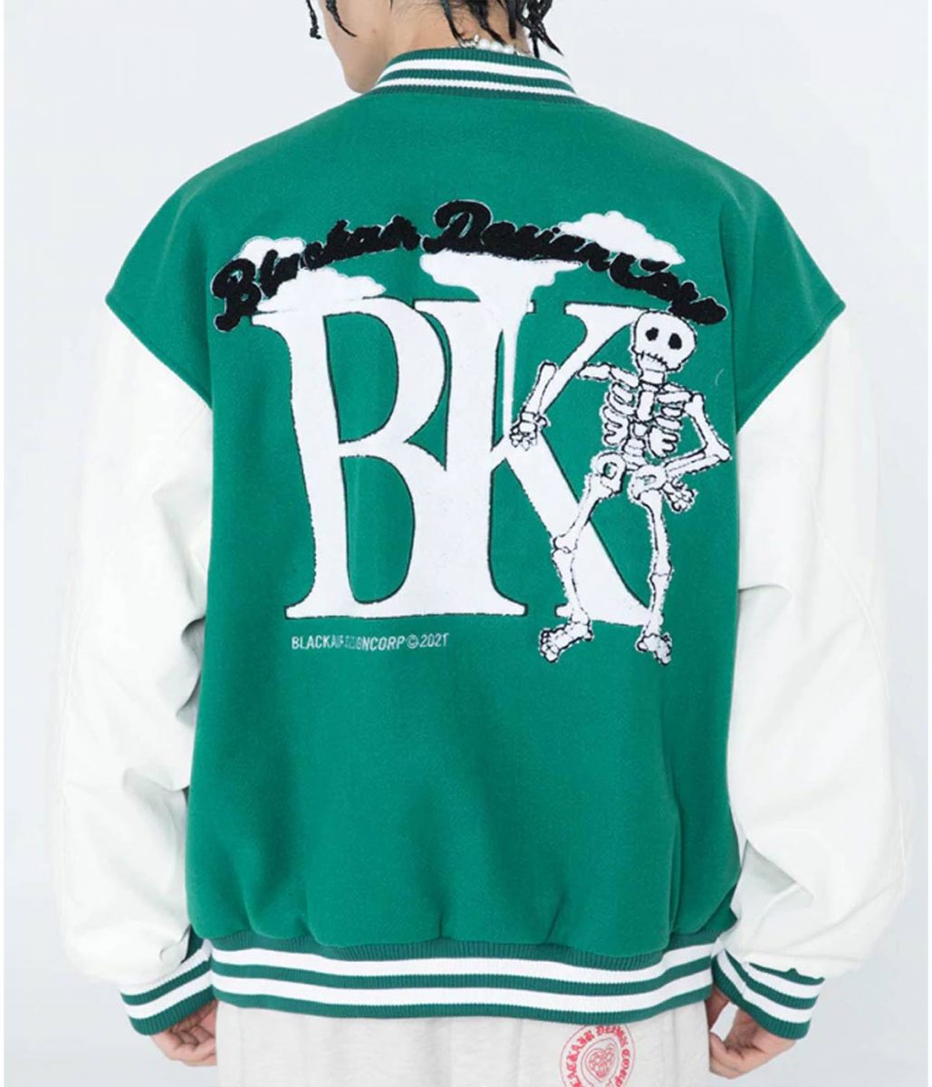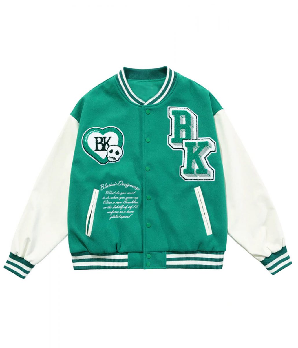 The Funny Skull Punk Star Patchwork Varsity Jacket is made from wool and the sleeves of the jacket are made from genuine leather. The jacket is available in black, blue and green colors that give it a smart look. The Black Air Design Corp Jacket has a rib knitted collar and a buttoned closure. The sleeves of the jacket are long and fitting with rib knitted cuffs. To keep stuff the Funny Skull Punk Star Patchwork Varsity Jacket has two side waist pockets. The inner of the jacket consists of a soft viscose lining for warmth and comfort. The jacket has patches on the chest and back. The hemline of the Black Air Design Corp Jacket is rib knitted that gives it a fitted look. The fine quality stitching makes the jacket durable to wear. The jacket is perfect for a night out with friends.