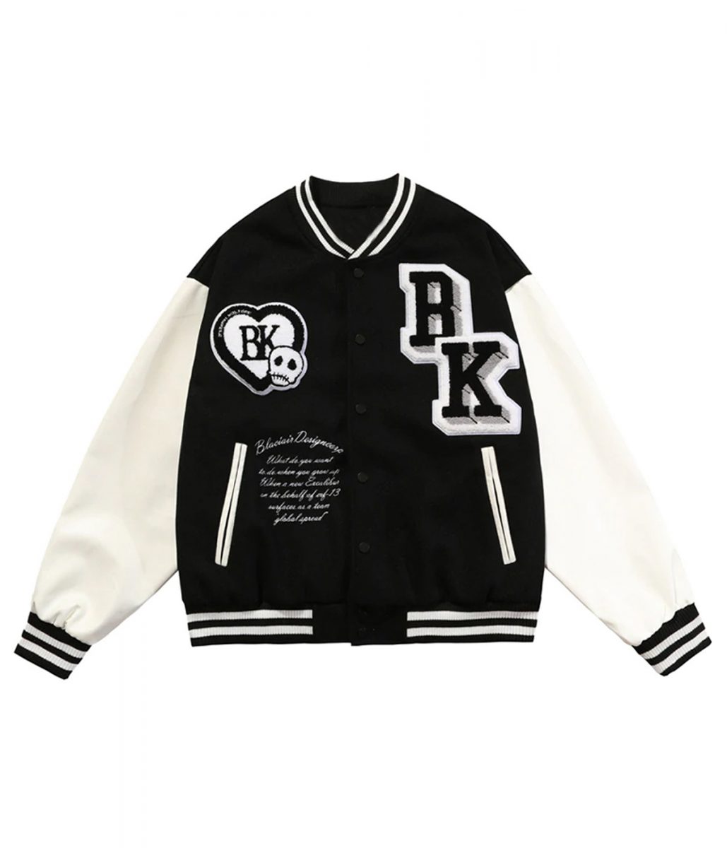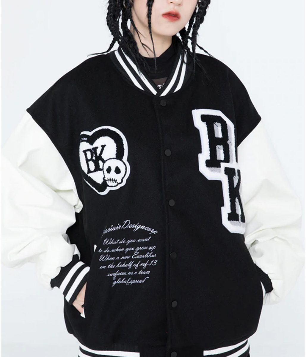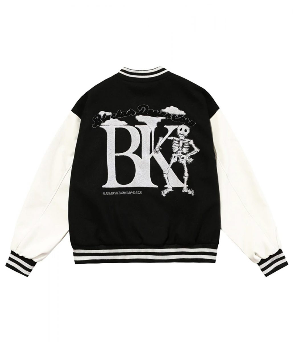 Funny Skull Black Air Design Corp Punkstar Varsity Patchwork Jacket