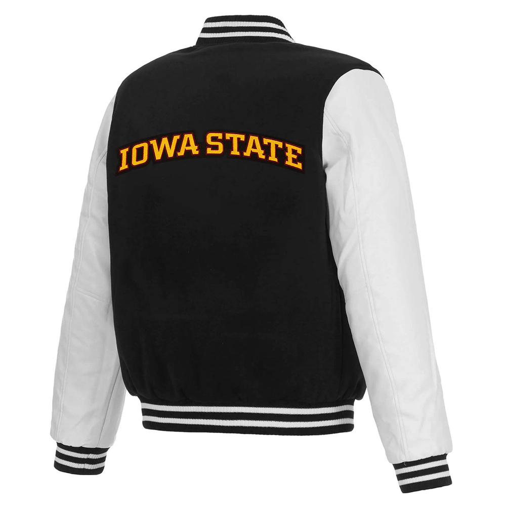 Iowa Hawkeyes Black and White Full-Snap Varsity Wool/Leather Jacket