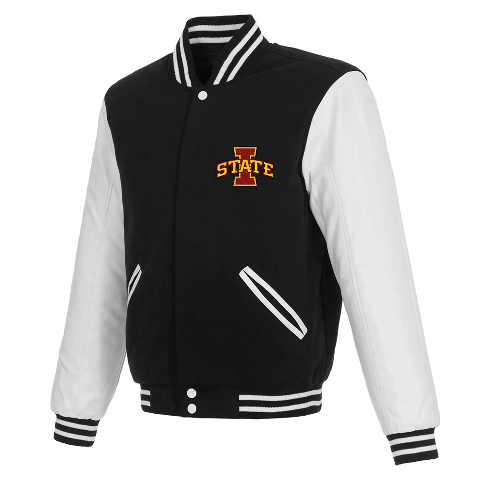 The emblem and the text of Iowa are placed in the center of the chest and back which will show off your support to the team. This Iowa Hawkeyes black and white varsity jacket is made with premium stitching, which makes it elegantly designed to represent your team style. Great for game days or a day out, it is both fashionable and comfortable in its design.