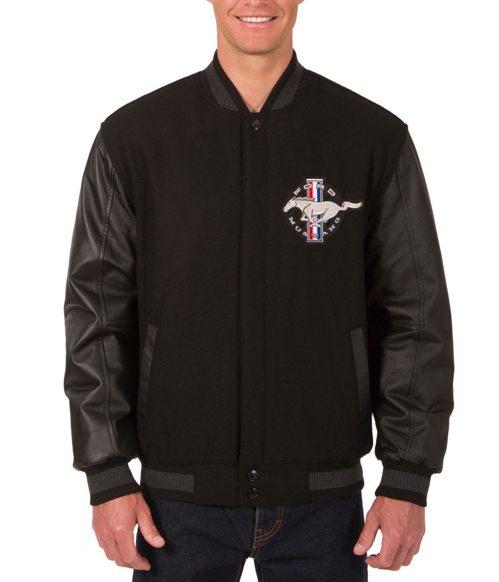 Varsity Ford Mustang Black Wool and Leather Jacket