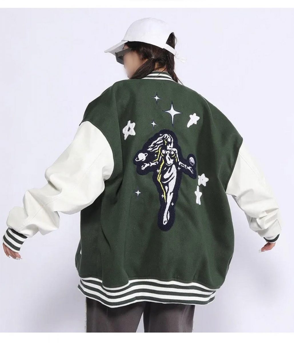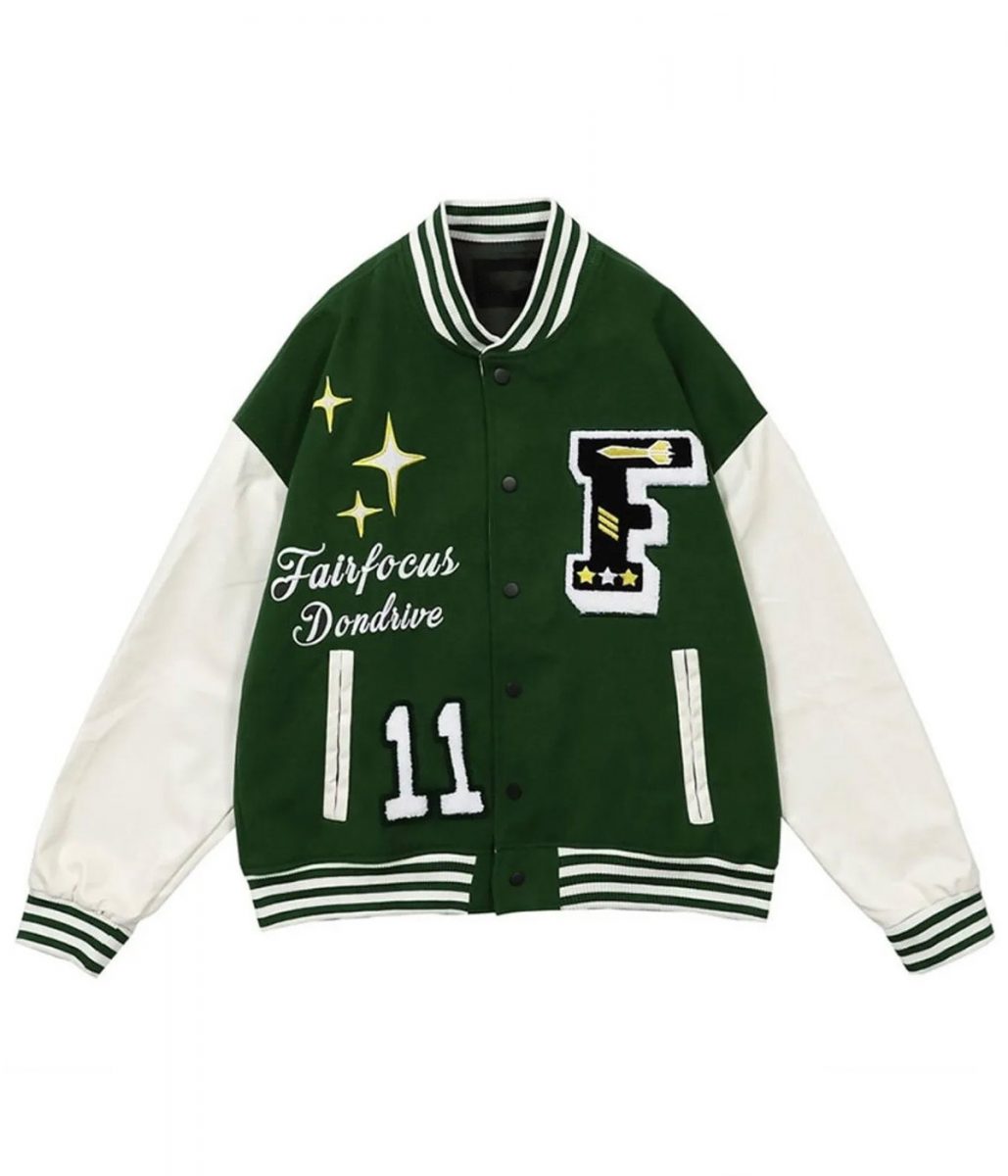 Fair Focus Dondrive Green/Black Wool/Leather Varsity Jacket