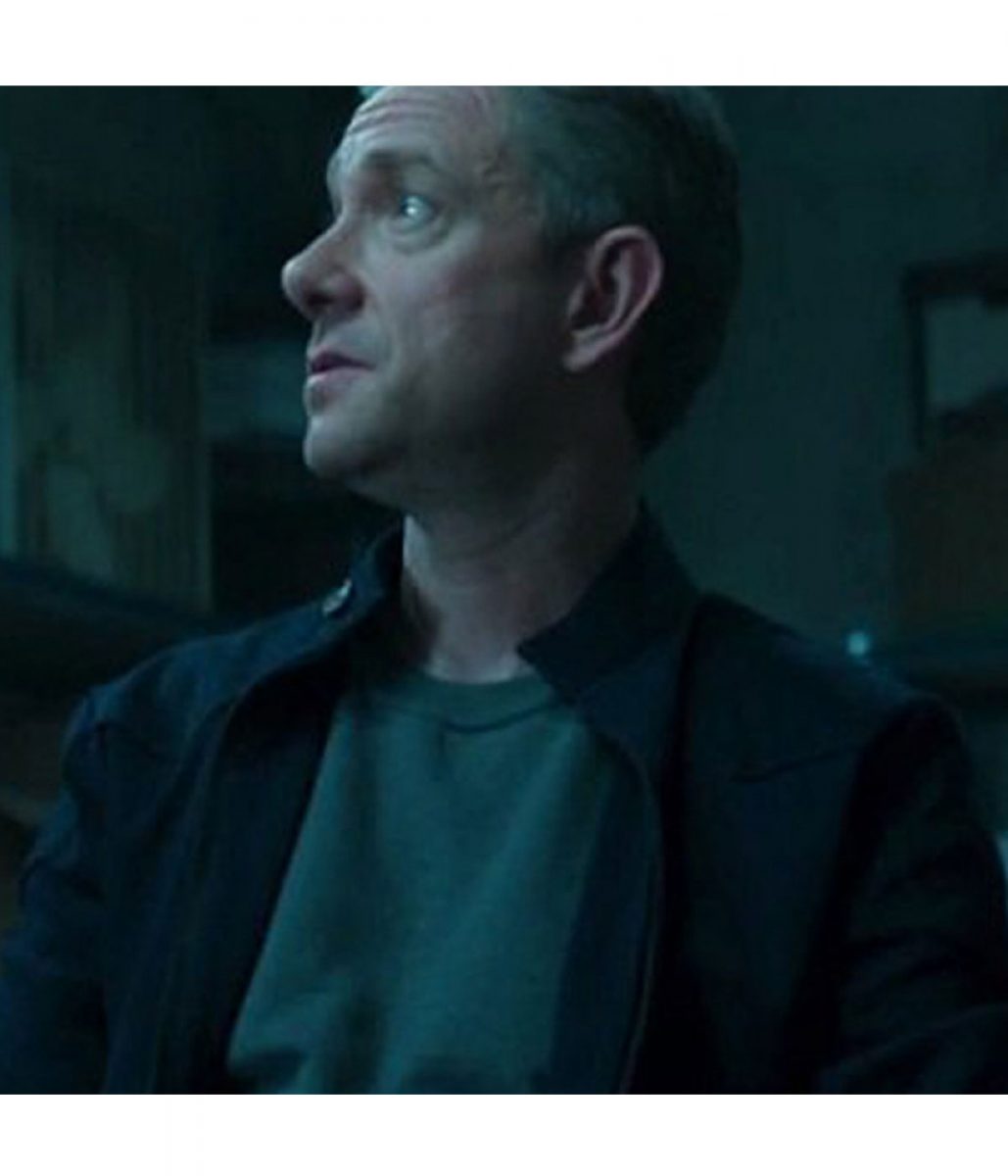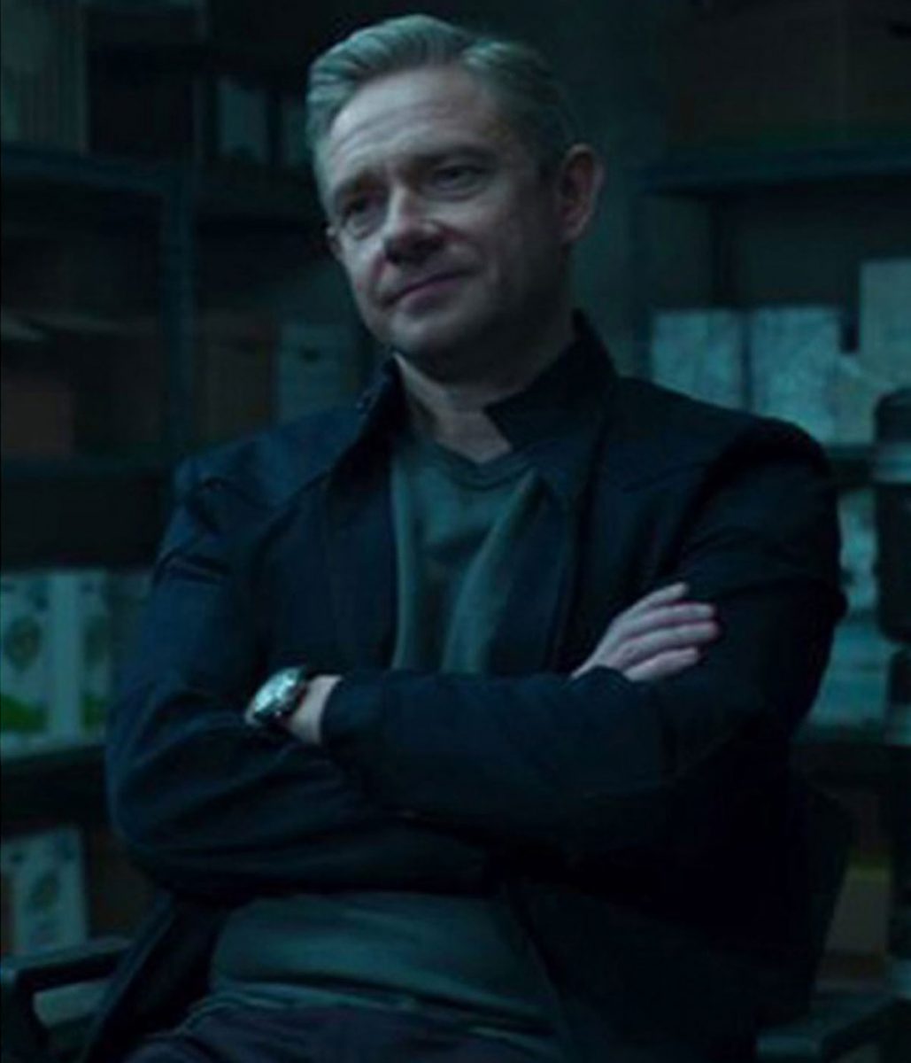 The Black Panther Martin Freeman jacket is made from high-quality cotton fabric. The jacket is available in a striking black color which gives it an innovative and edgy look. The collar of the jacket is stance style with buttons. It has branded YKK front zipper closure. A soft viscose inner lining of the jacket keeps you warm and relaxed. The sleeves of the Everett K Ross jacket are long end with open hem cuffs. Patch designing on both shoulders is present to increase the beauty. The fine quality stitching of the Black Panther Martin Freeman jacket makes it durable and comfortable to wear. The jacket is the exact clone of the one worn by the character in the film.