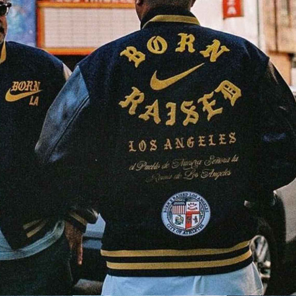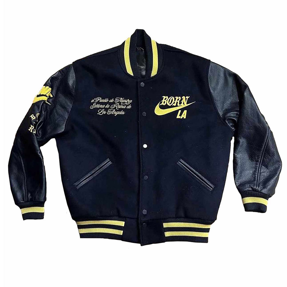 Define your style with the Born Raised Varsity Jacket in sleek black. This streetwear essentially brings an edgy and contemporary flair, featuring the iconic LA-inspired design by Born X Raised. The varsity silhouette adds a touch of classic coolness, making it a versatile piece for any urban wardrobe. Made with precision and quality, the jacket combines comfort with bold style, this Born X Raised Varsity Jacket is a symbol of individuality and streetwise fashion. Design your wardrobe with a piece that captures the essence of Los Angeles Street culture while showcasing your penchant for standout style with the born x raised Los Angeles varsity jacket.