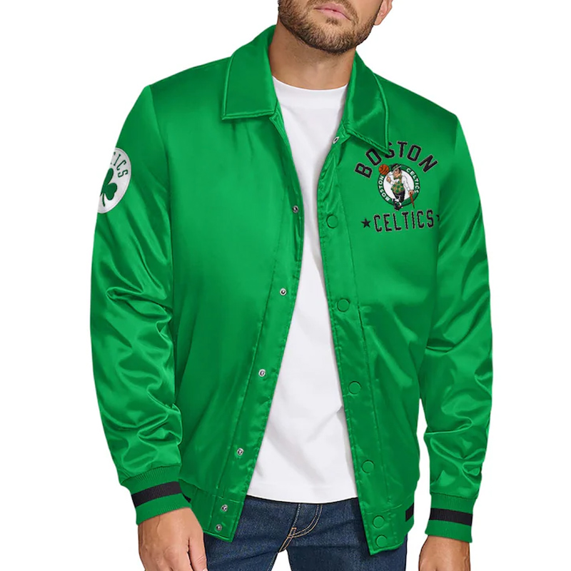 The Boston Celtics Stitch Applique Kelly Green Jacket stands out through its design for both males and females to show their unending Celtics devotion. Boston Celtics fans should add this premium jacket to their collection because it beautifully marries team spirit and elegant style although it takes its inspiration from this famous basketball squad.