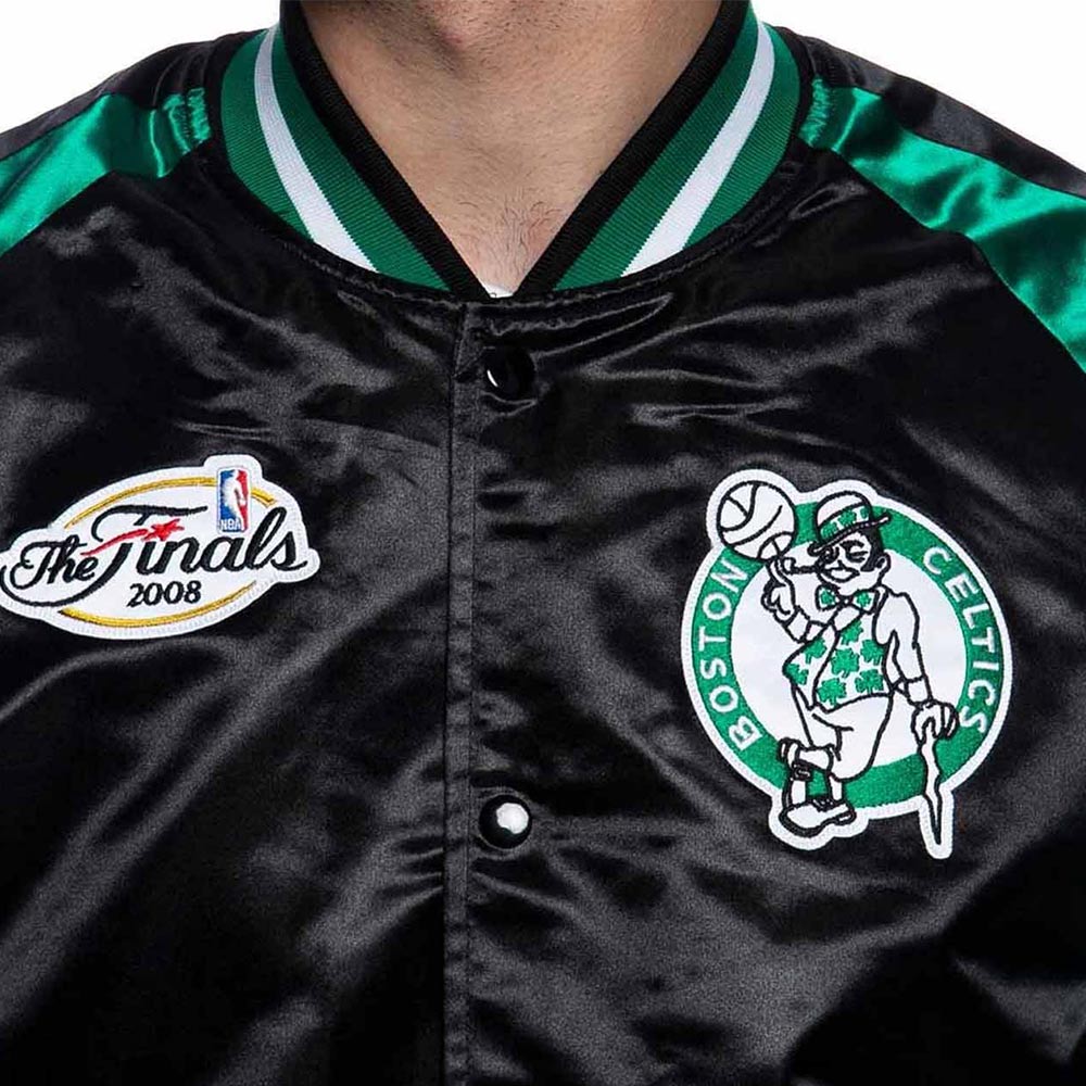 2008 The Finals Boston Celtics Satin Black and Green Full-Snap Jacket