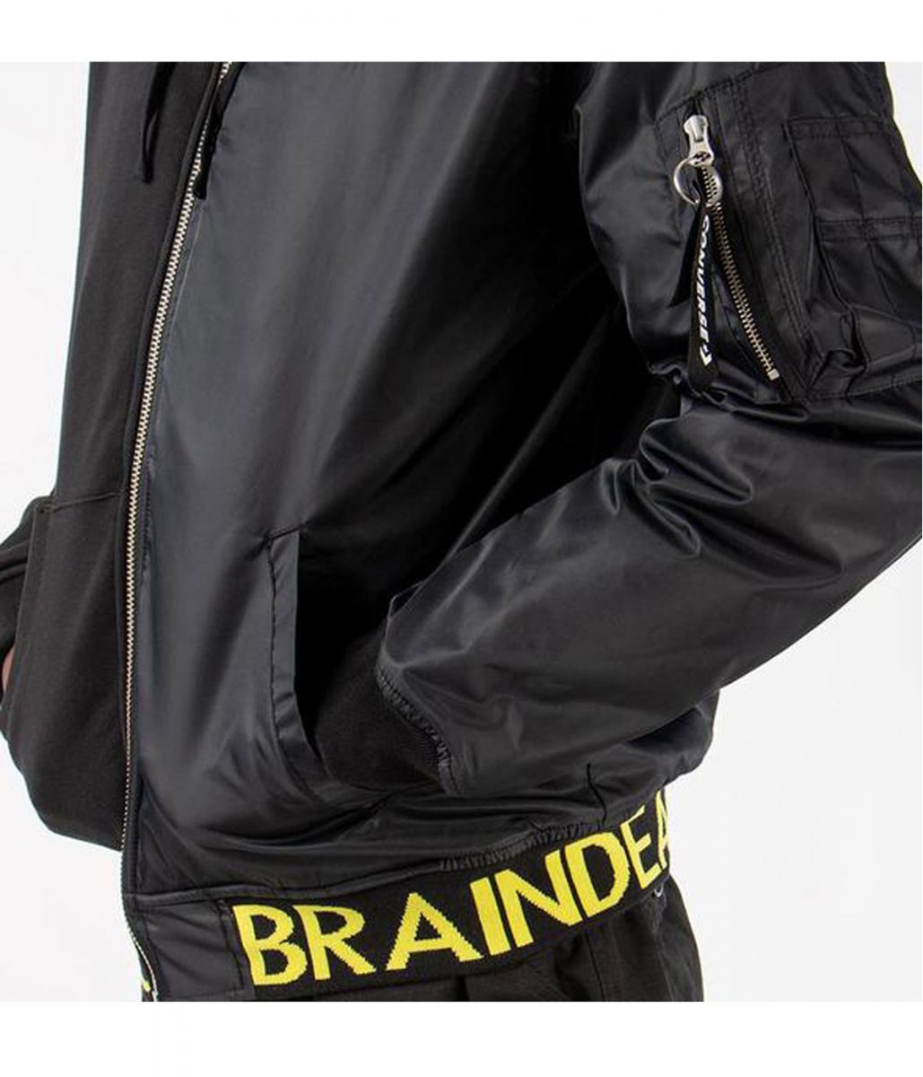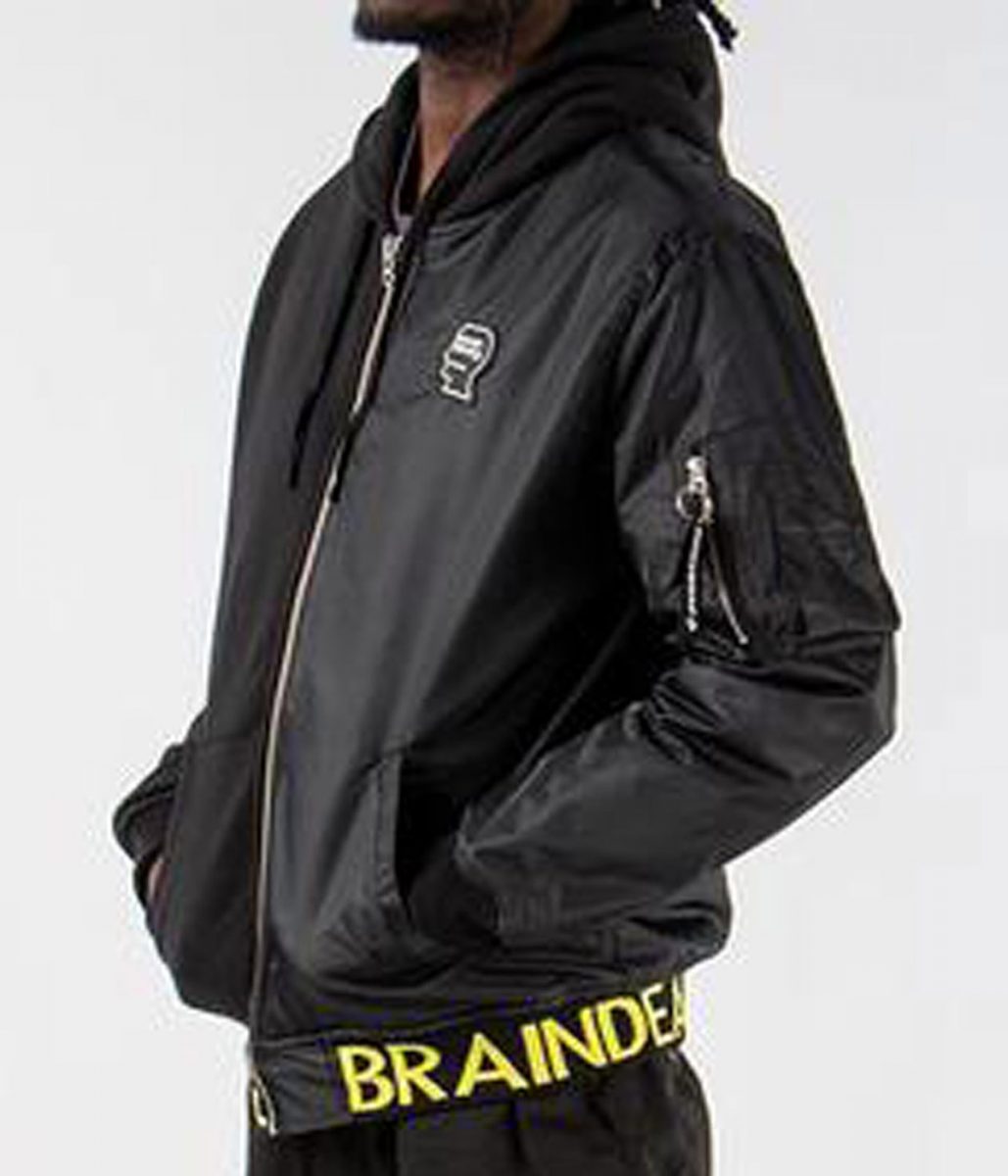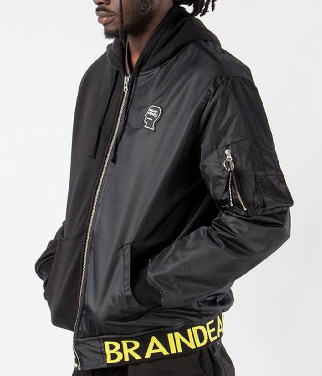 The Brain Dead hoodie is made from high-quality Satin and Fleece fabric. The hoodie is available in mesmerizing black color, which gives it an innovative and attractive look. The collar of the hoodie is hooded style. It has a branded YKK zipper-style front closure. A soft viscose inner lining of the hoodie keeps you fresh and comfortable. The sleeves of the Brain Dead Bomber Hooded jacket are full-length ends with rib knitted cuffs. The hoodie has two side waist pockets and two inside pockets for keeping stuff. The fine quality stitching of the Brain Dead hoodie makes it durable and desirable to wear. The hoodie is an ideal choice for casual wear and party wear.