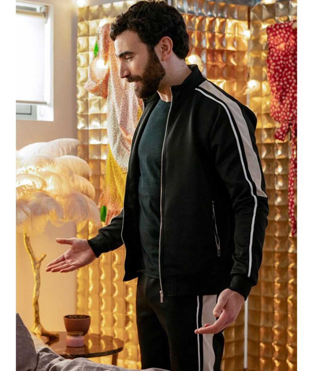 The Roy Kent jacket is made from high-quality satin. The jacket is available in mesmerizing black color, which gives it an innovative and mysterious look. The collar of the jacket is stand-up style. It has a branded YKK front zipper closure. A soft viscose inner lining of the jacket keeps you calm and relaxed. The sleeves of the Ted Lasso Brett Goldstein track jacket are full-length ends with rib-knitted cuffs. The jacket has two side waist pockets for keeping stuff. The fine quality stitching of the Roy Kent jacket makes it durable and desirable to wear. The jacket is an ideal choice for stylish men.