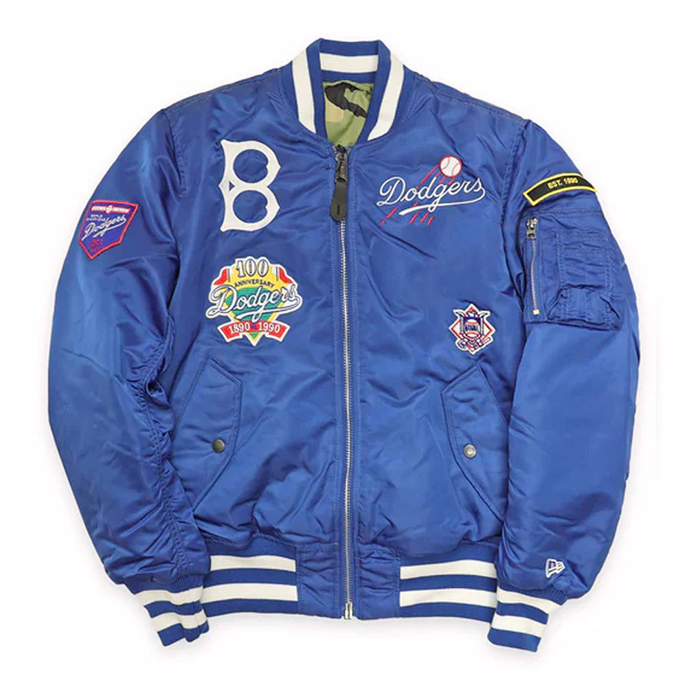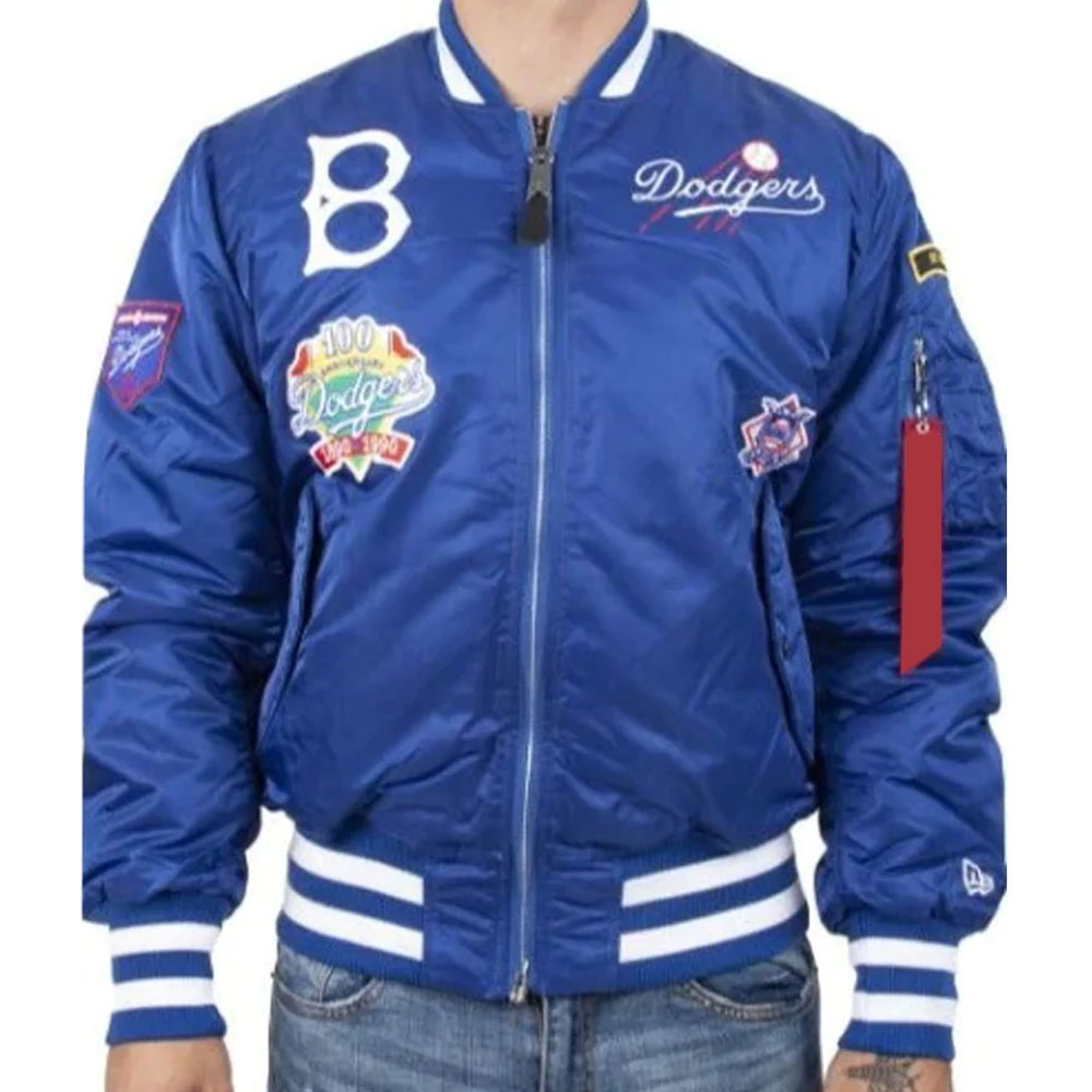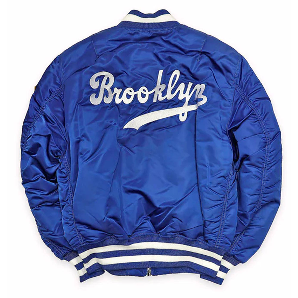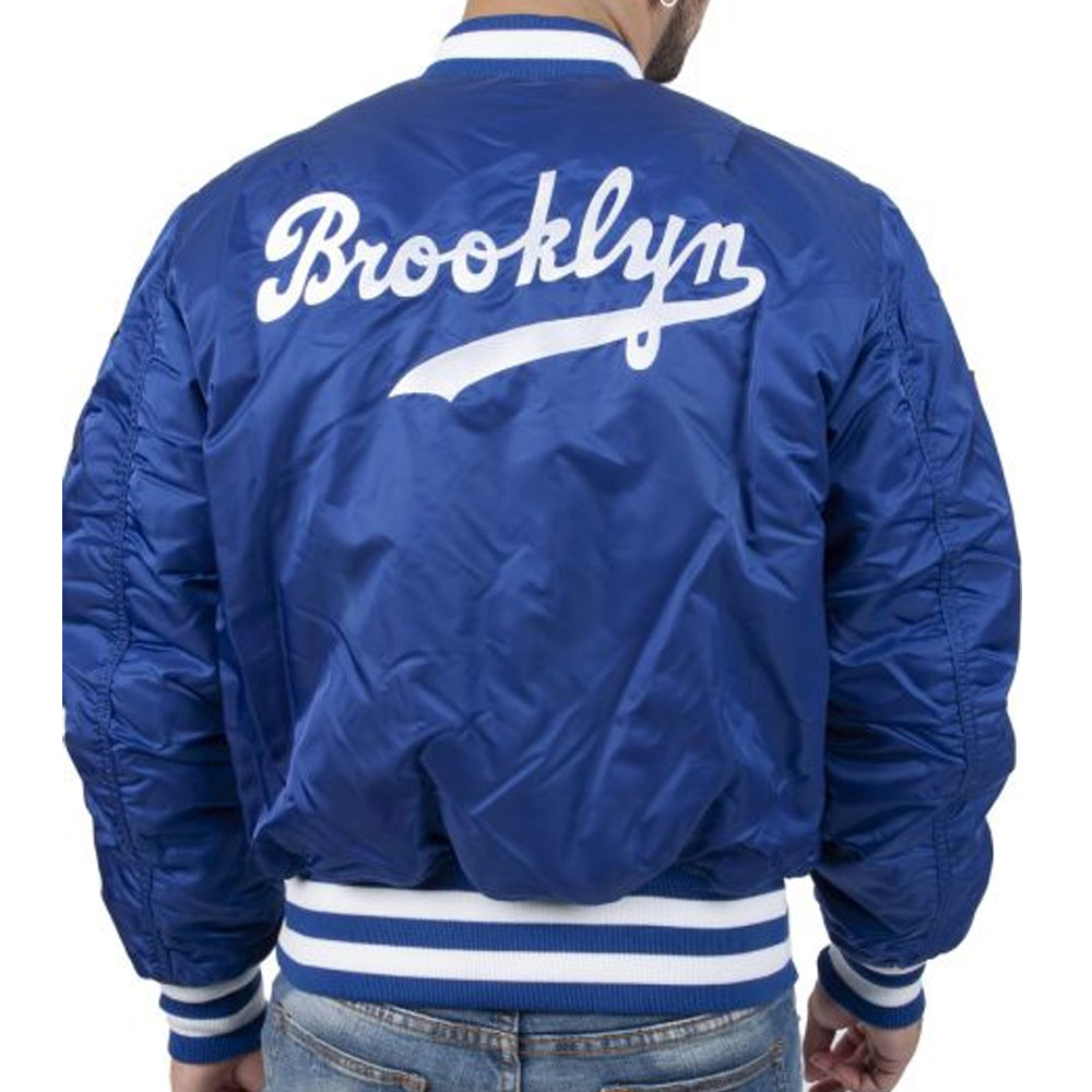 Elevate your style manifesto with the Brooklyn Dodgers MA-1 Bomber jacket, an epitome of fashion brilliance meticulously tailored from premium satin. Its glorious royal blue color exudes innovation and captivates with an irresistible allure. The rib knitted collar and buttoned front closure on this jacket effortlessly harmonize functionality with haute couture, a symbol of your elevated taste. Embrace the soft viscose inner lining, cocooned in luxurious comfort, wrapped in opulence. The long sleeves, adorned with sleek rib knitted cuffs, add a touch of finesse, elevating your grace to celestial heights. With one inner and two outside pockets, this Brooklyn Dodgers Bomber MA-1 jacket epitomizes practicality while maintaining your unique flair. Experience unparalleled comfort and desirability, as the fine quality stitching exemplifies artisanal brilliance. Perfect for making an indelible impression at gatherings, this Brooklyn Dodgers MA-1 Bomber jacket reflects your confident individuality and trendsetting prowess, a symbol of your top-notch style and panache..