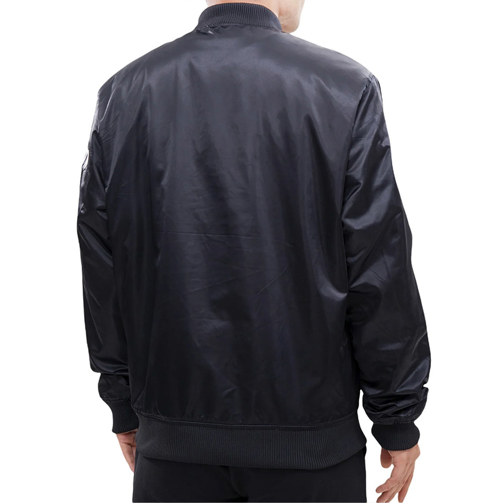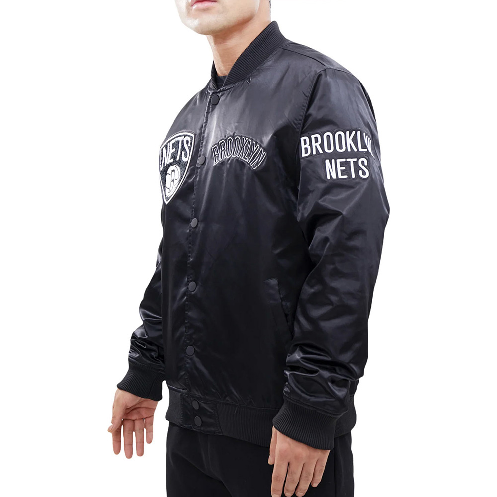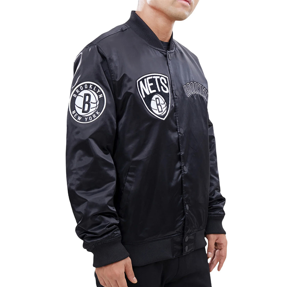 Black Brooklyn Nets Team Logo Full-Snap Satin Jacket